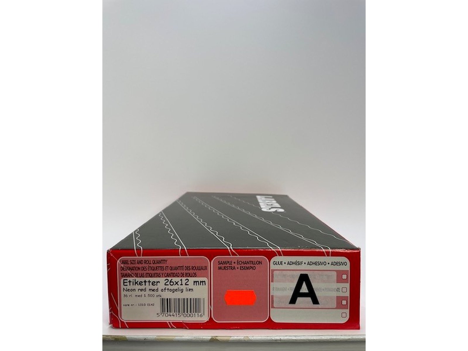 Etiketter 26x12 neon rød aftag. Wave 36 rl.