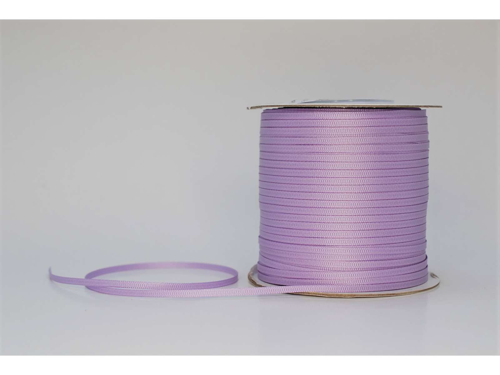 Smalt silkebånd i flot lyselilla farve. Bredde 3mm x længde 320 meter