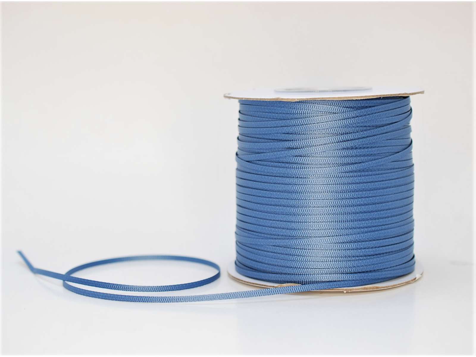 Smalt silkebånd 3mm x 320 meter i støvet blå.