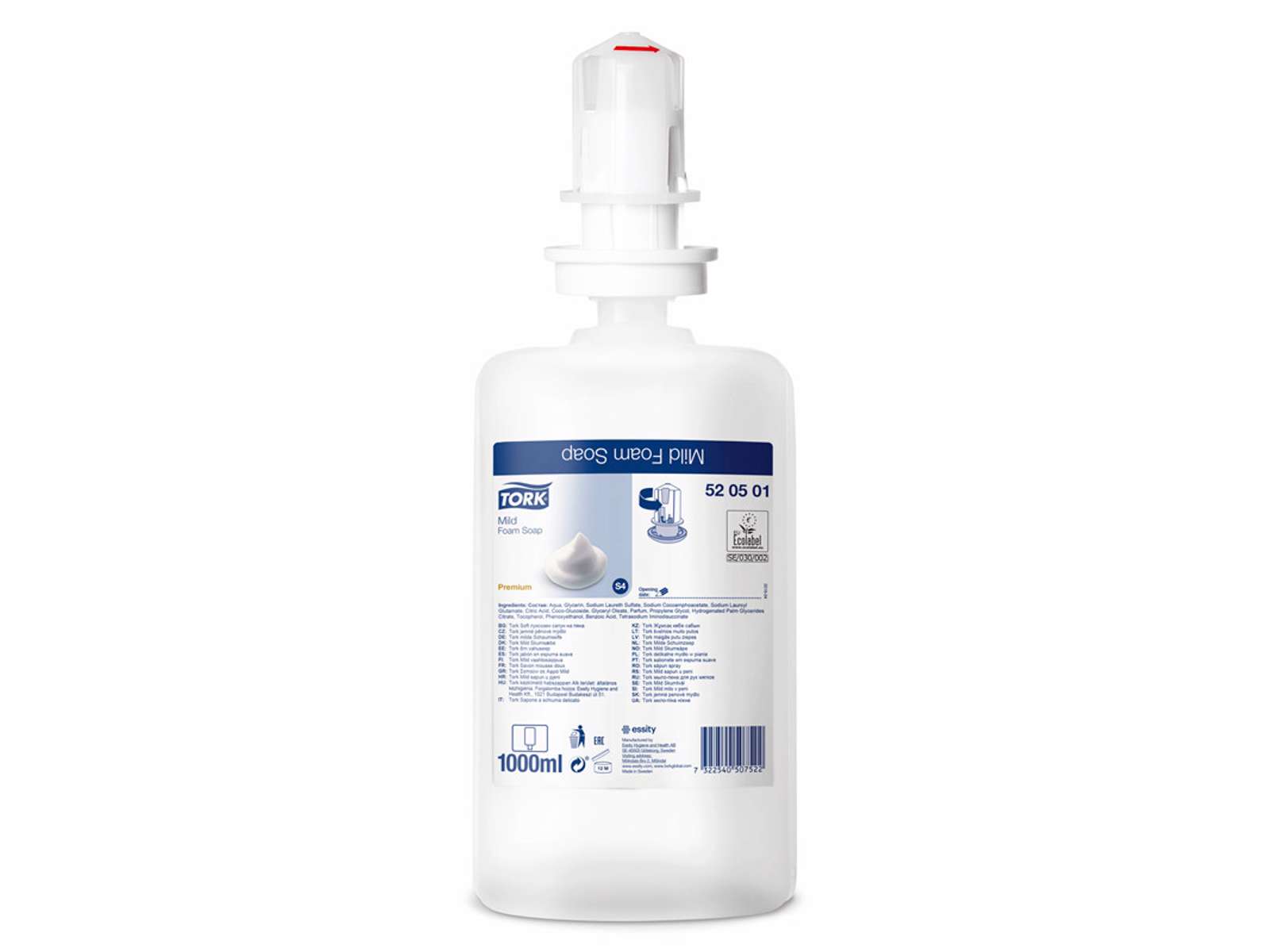 Pleje til alle hudtyper. Tork Mild Skumsæbe har en frisk duft og indeholder fugtende og genopbyggende ingredienser – giver et blødt og cremet skum til skånsom håndvask. Egnet til Tork Skumsæbe dispensere, som er lette at betjene og sikrer alle brugere god håndhygiejne. Indeholder ca. 2500 doseringer pr. stk.