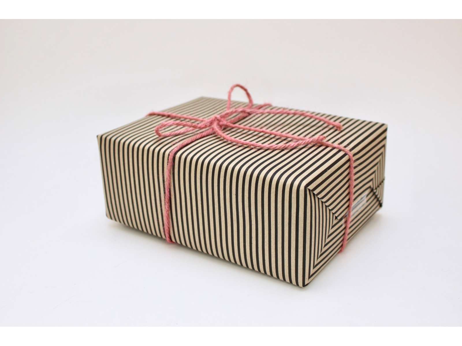 Gavepapir med sorte tynde streger trykt på 100% genbrugspapir. 40 cm bredt x 130 meter pr. rulle