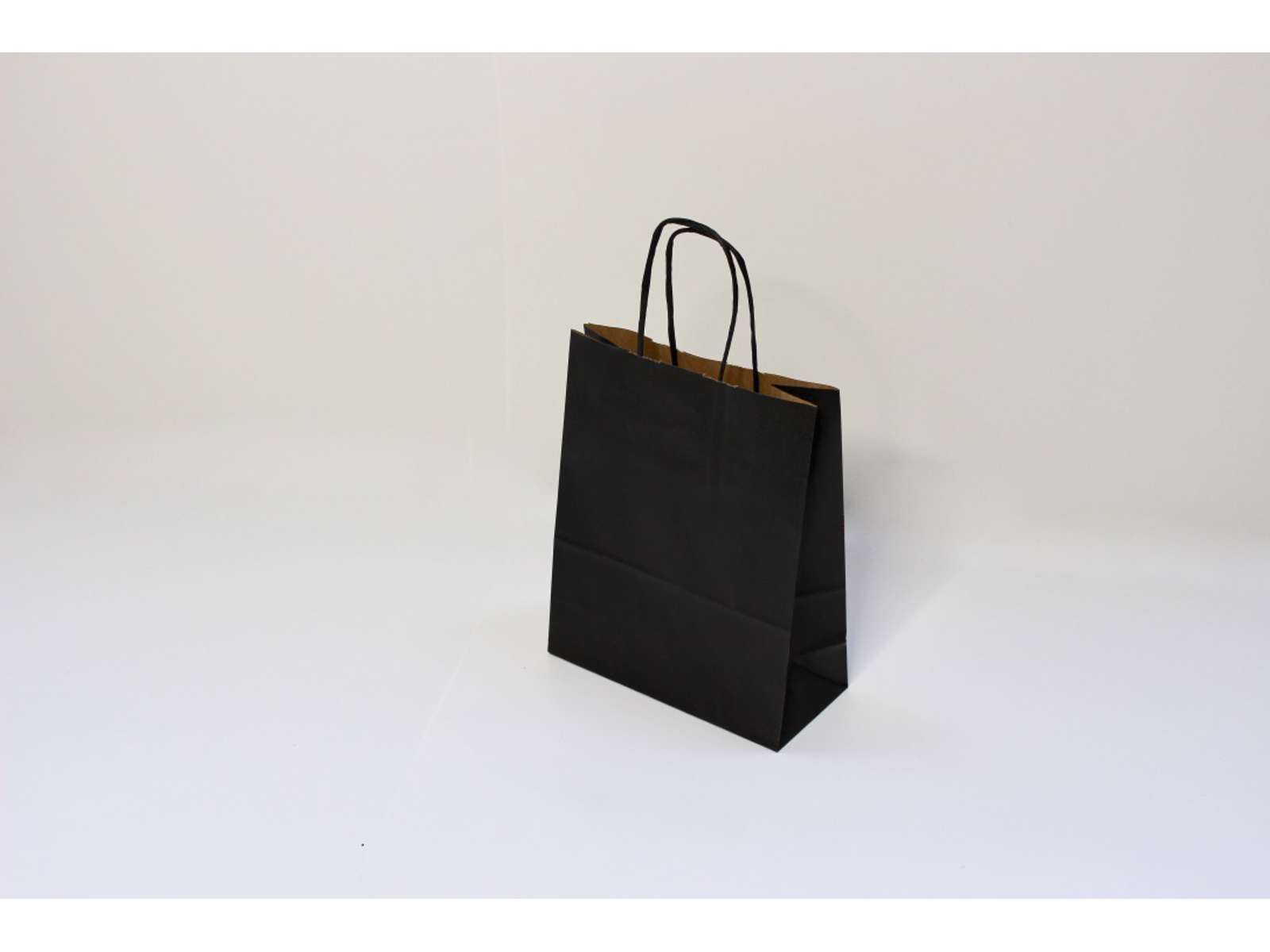 18x8x22cm sort papirbærepose i 100 grams papir med wort twistet hank