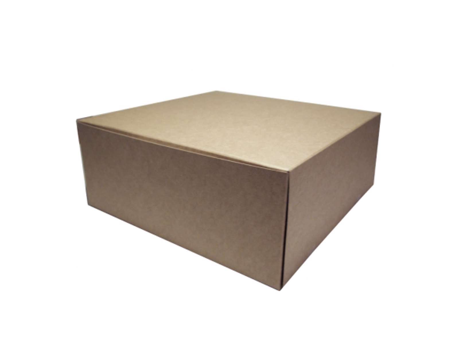 Kageæske 25x25x10 cm Brun/hvid. Hængslet låg