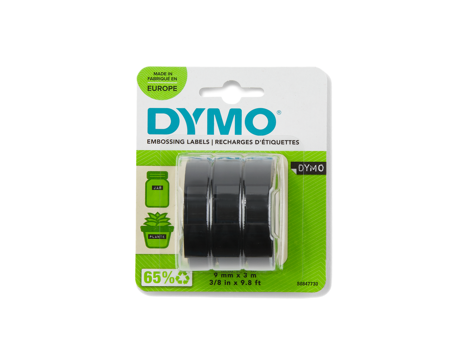 • Om du bruger dem inden eller uden døre, kan du regne med DYMO® plastprægeetiketter - de holder! De klæber til enhver glat, ren overflade og fås i mange forskellige farver, til forøget visuel effekt og nem kommunikation. DYMO går meget op i miljøet, og tænker på genbrug. Alle DYMO®-etiketter er fremstillet i Europa. Emballagen til plastprægede etiketter er fremstillet af en blanding af 65 % genbrugsmaterialer og FSC-certificerede materialer.