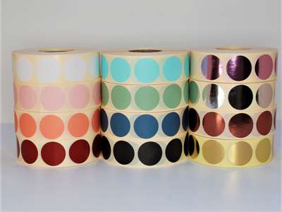 Her finder du et bredt udvalg af etiketter på rulle med og uden tryk