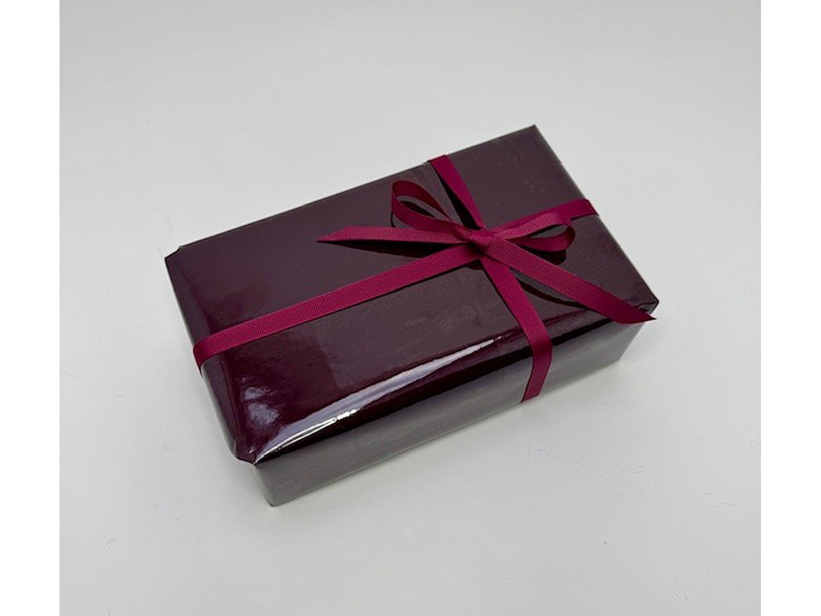 Plum lakpapir 50cm x 180 meter. Flot blankt gavepapir i en dyb vinrød farve. Gavepapiret er i en eksklusiv kraftig kvaliltet med blank UV-lak