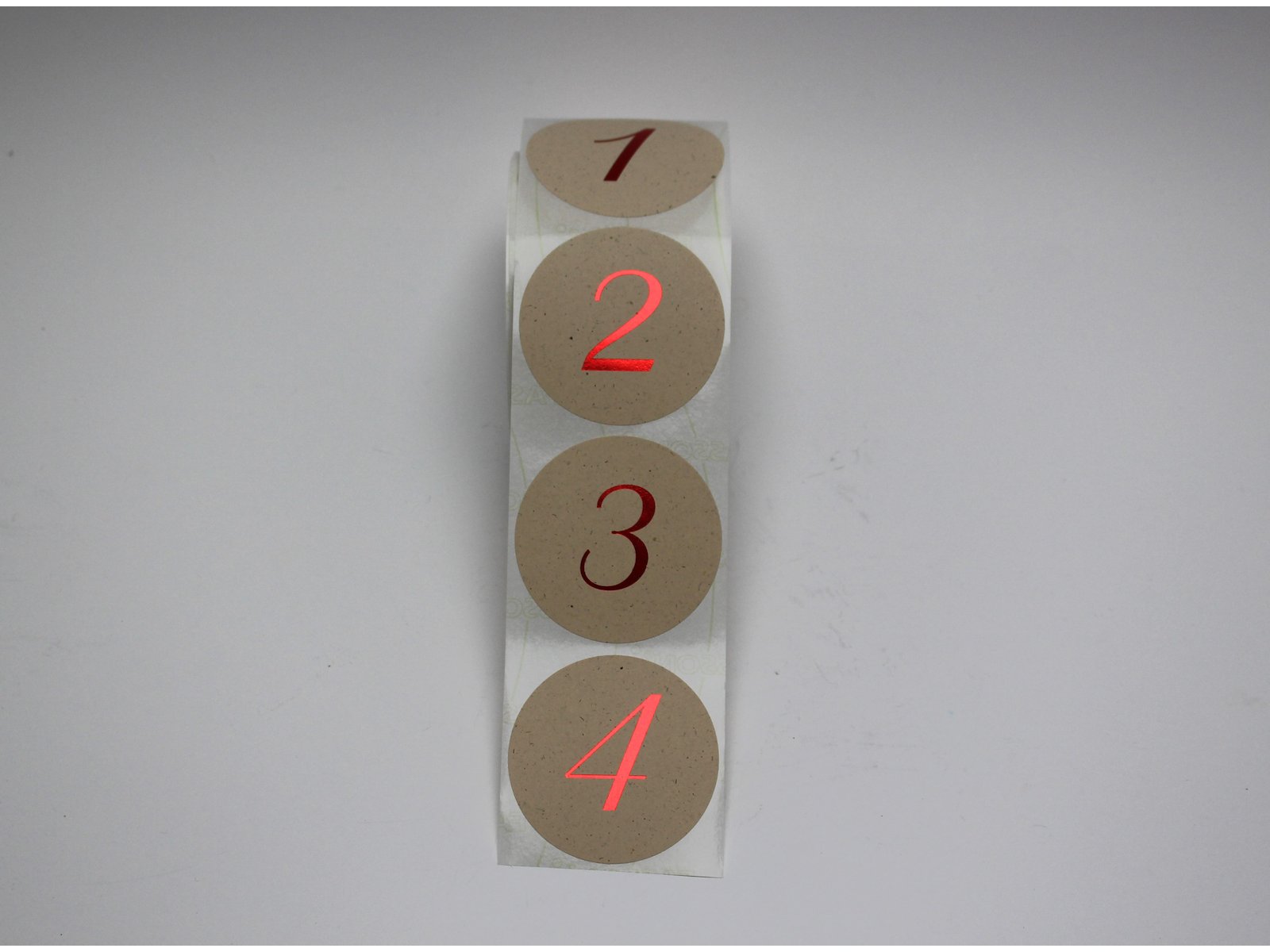 Gør det nemt at pakke adventsgaver ind med disse adventsetiketter med tallene 1-4. Etiketterne måler Ø63mm og er kvist med blanke tal i rød. Der er 120 sæt af tallene 1-4 på hver rulle.