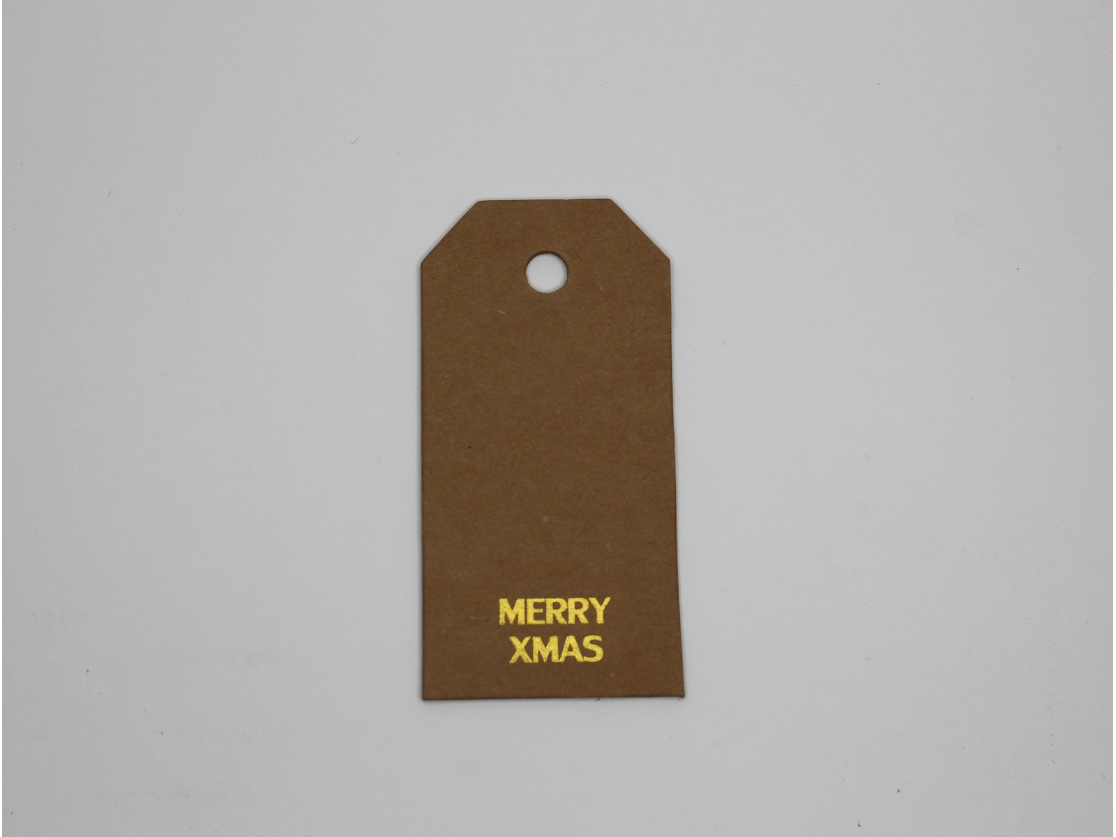 Papmærke 4x8cm Merry Xmas natur m/guld tryk 100 stk