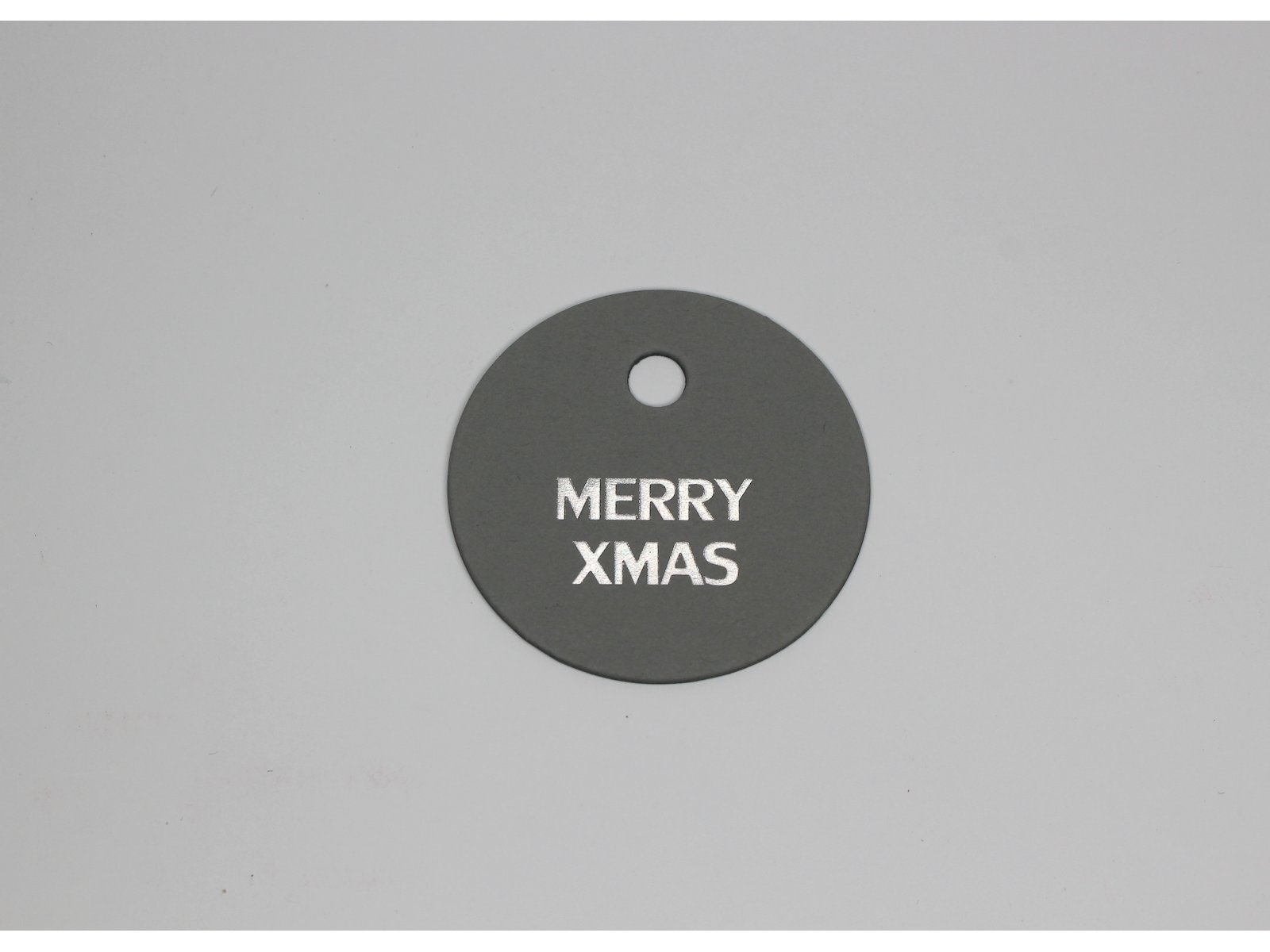 Papmærke rundt Merry Xmas grå m/sølv tryk 100 stk