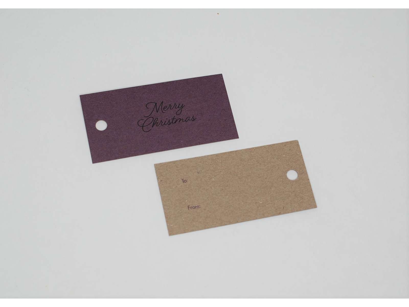 Merry Christmas står der på forsiden og to: og from: på bagsiden.