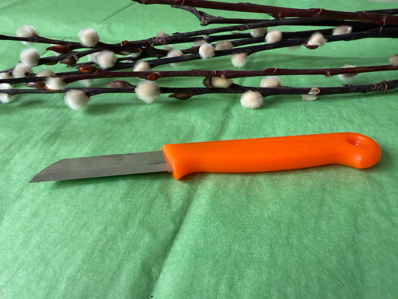 Den klassiske orange blomsterkniv til at snitte blomsterstilke med.