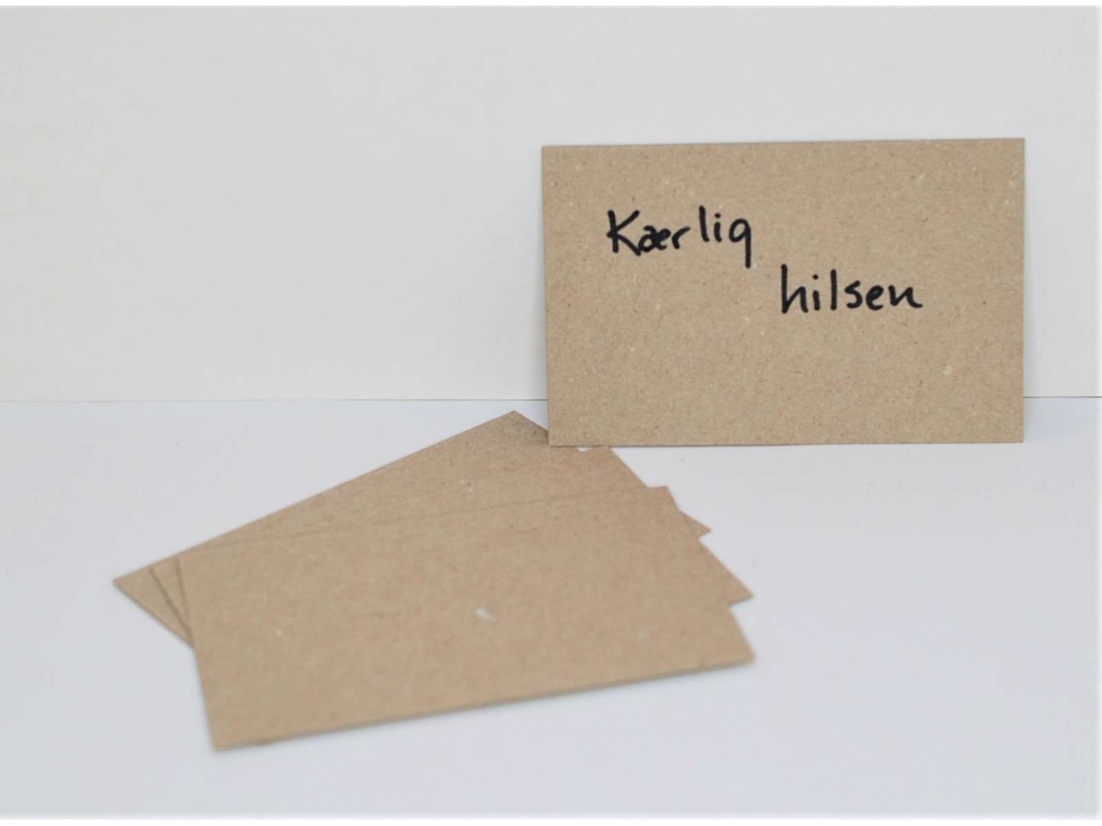 Naturfarvede kort i 225 grams genbrugskarton.