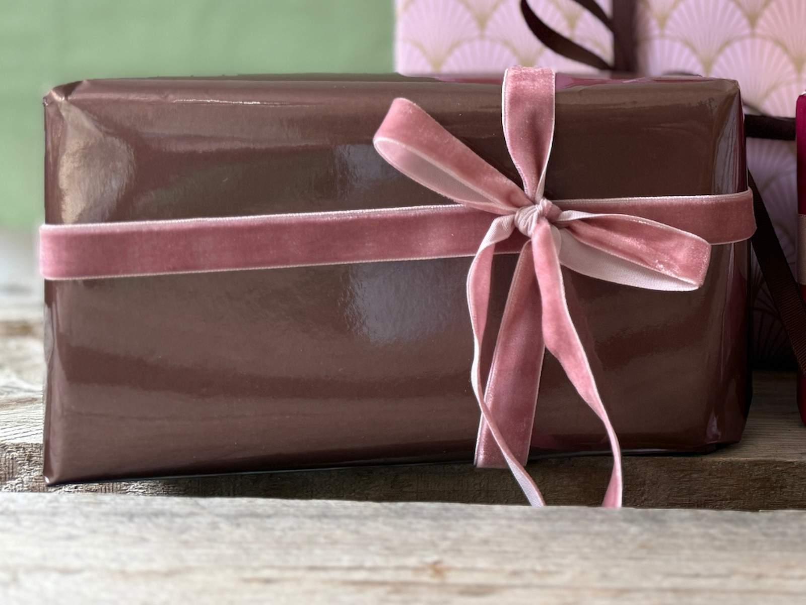 Eksklusivt gavepapir med lakoverflade i en flot metallic brun farve. Bredden på lakpapiret er 50 cm og der er 180 meter pr. rulle.