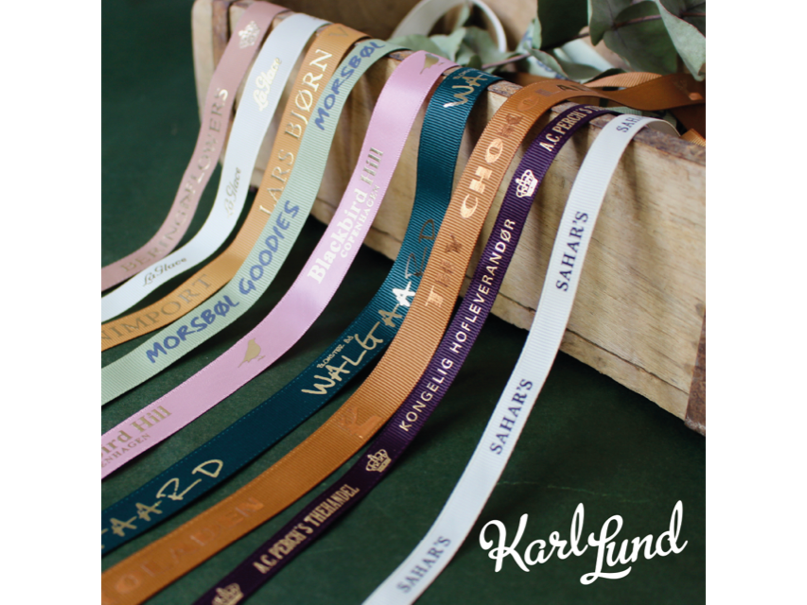 Få dit eget logo trykt på silkebånd i 16 mm´s bredde. Der er 196 farver at vælge imellem, som du kan se her