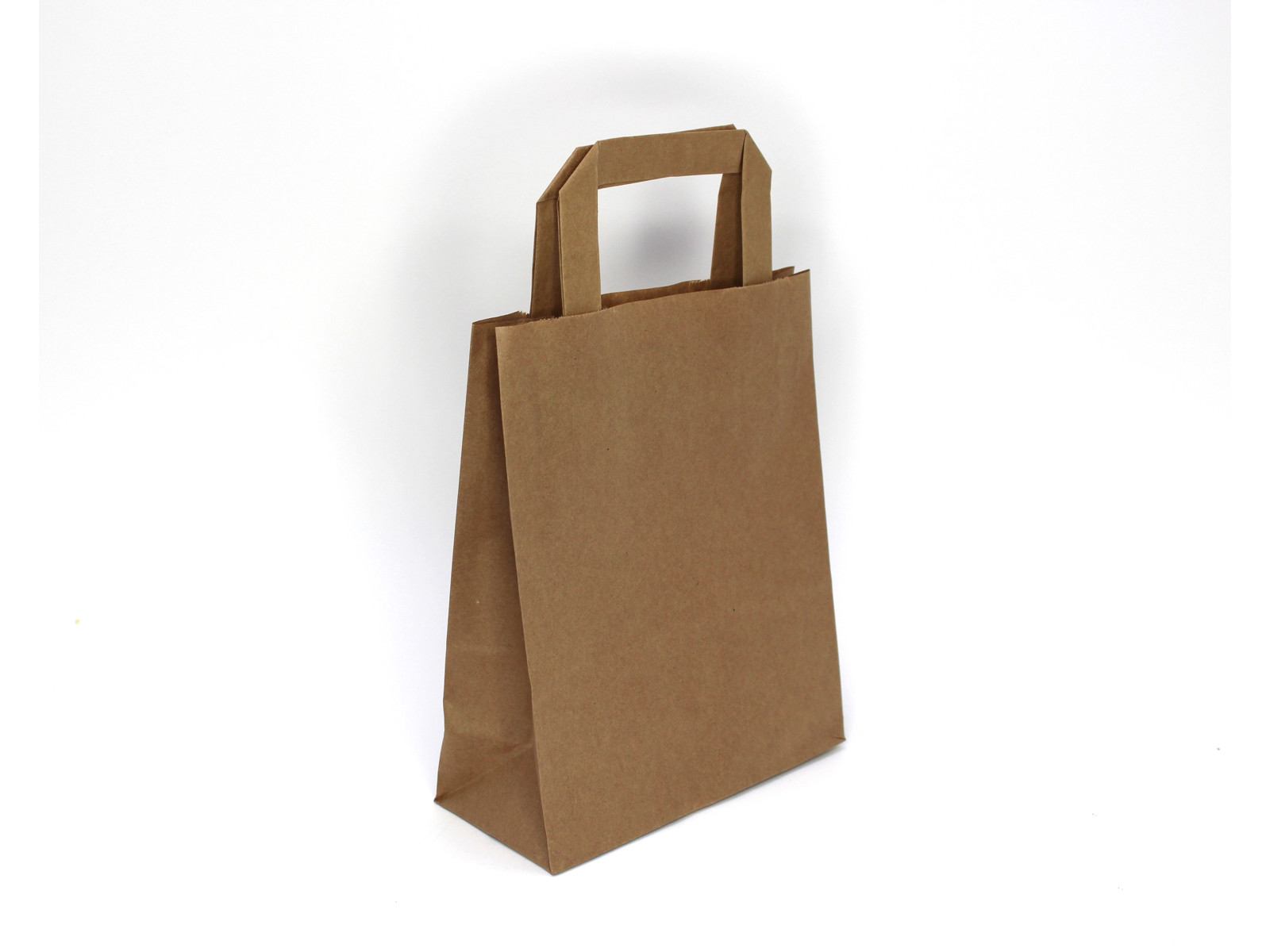 Brun papirspose med flad indvendig hank.