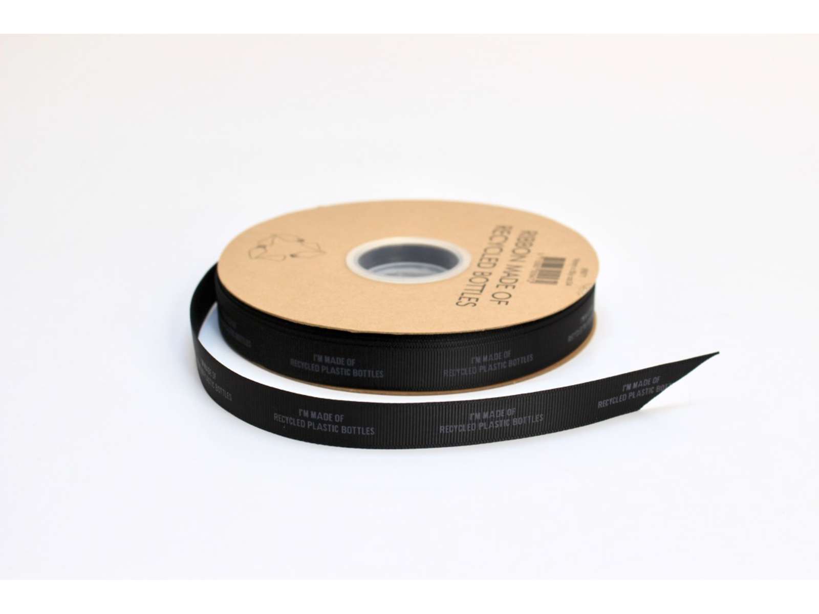 Rulle a 45 meter. 16 mm bredt. Båndet er lavet af genanvendte plasticflasker. Rillet 16mm x 45 meter.