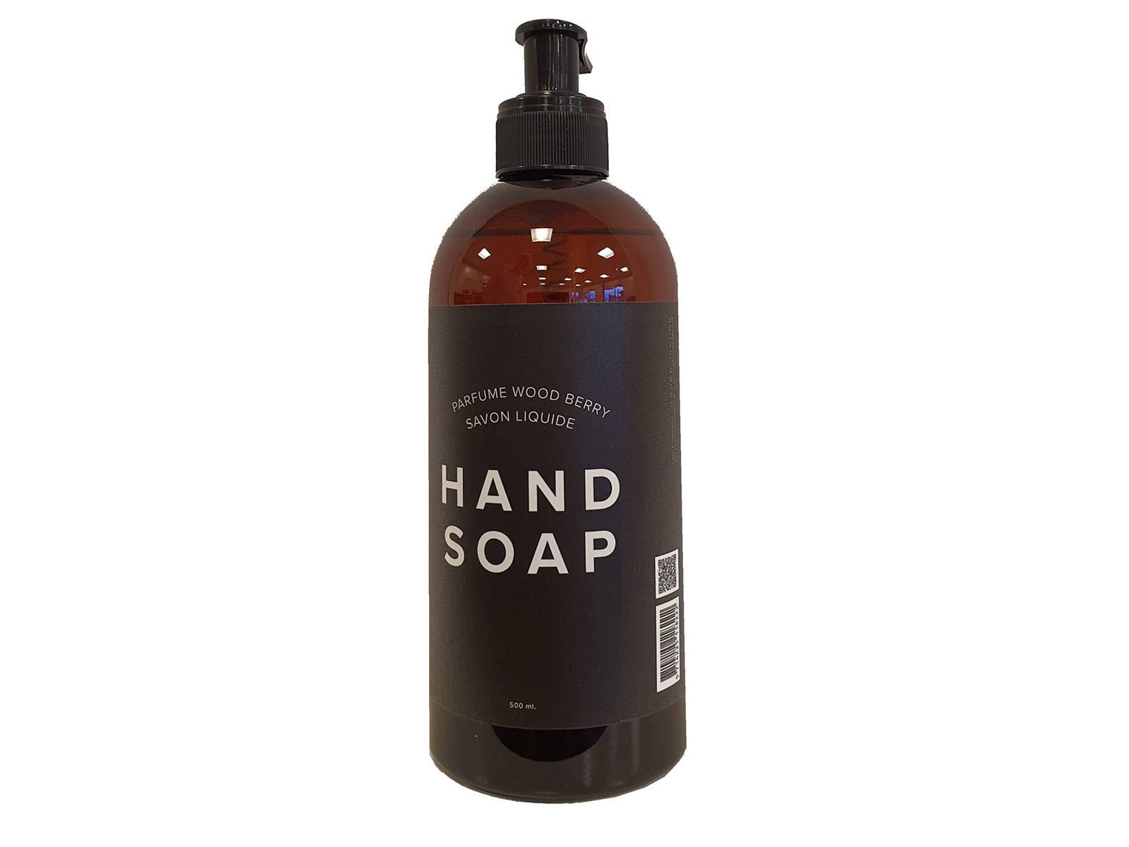 Håndsæbe i pæn brun dispenser med pumpe. Der er 500ml i hver flaske og håndsæben har en skøn duft af skovbær.