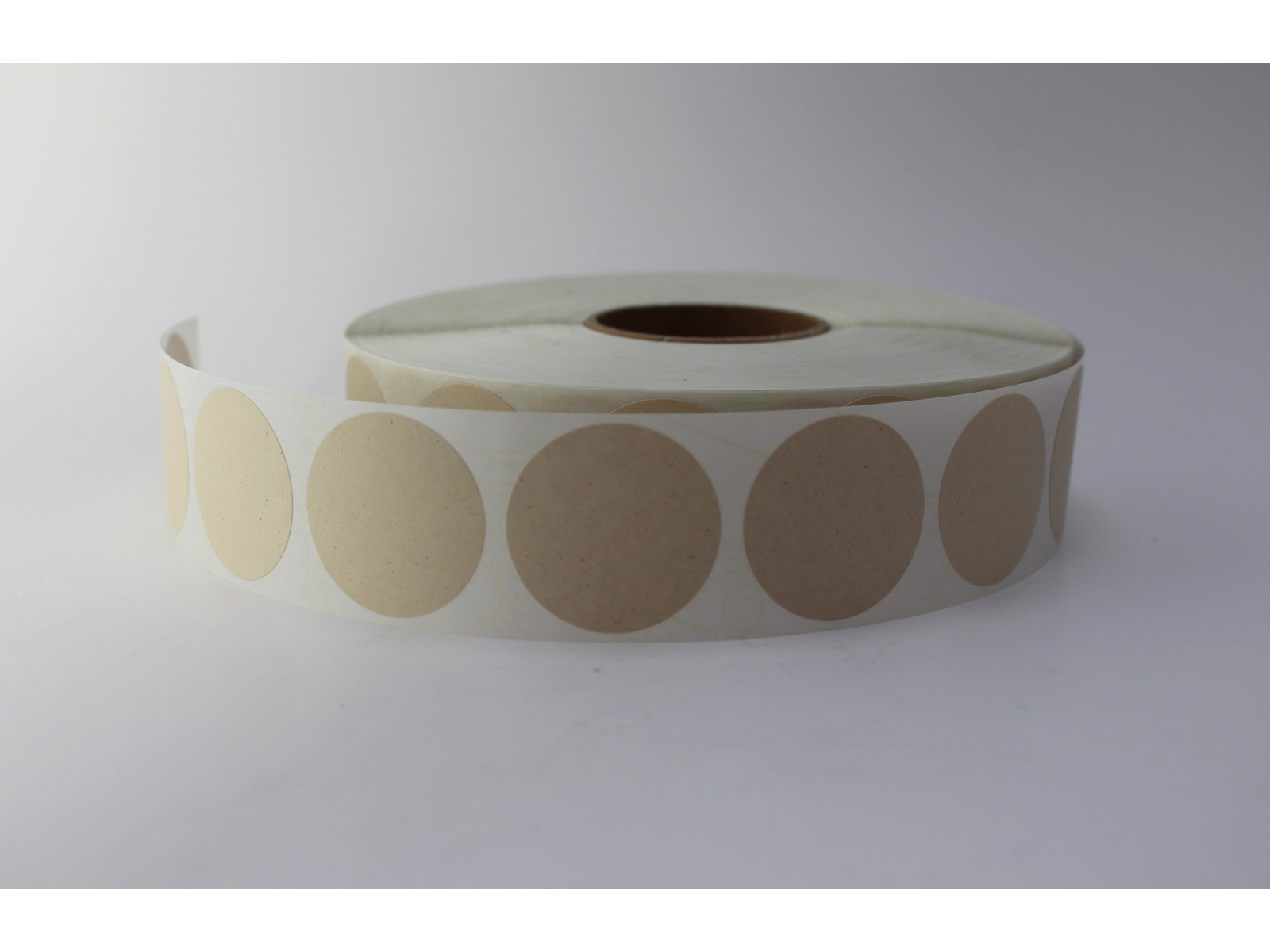 Runde etiketter i Ø30mm lavet af nistret genbrugspapir. Der 2000 etiketter på en rulle. du kan stemple på etiketterne og skrive med både kuglepen og alle slags tusser.