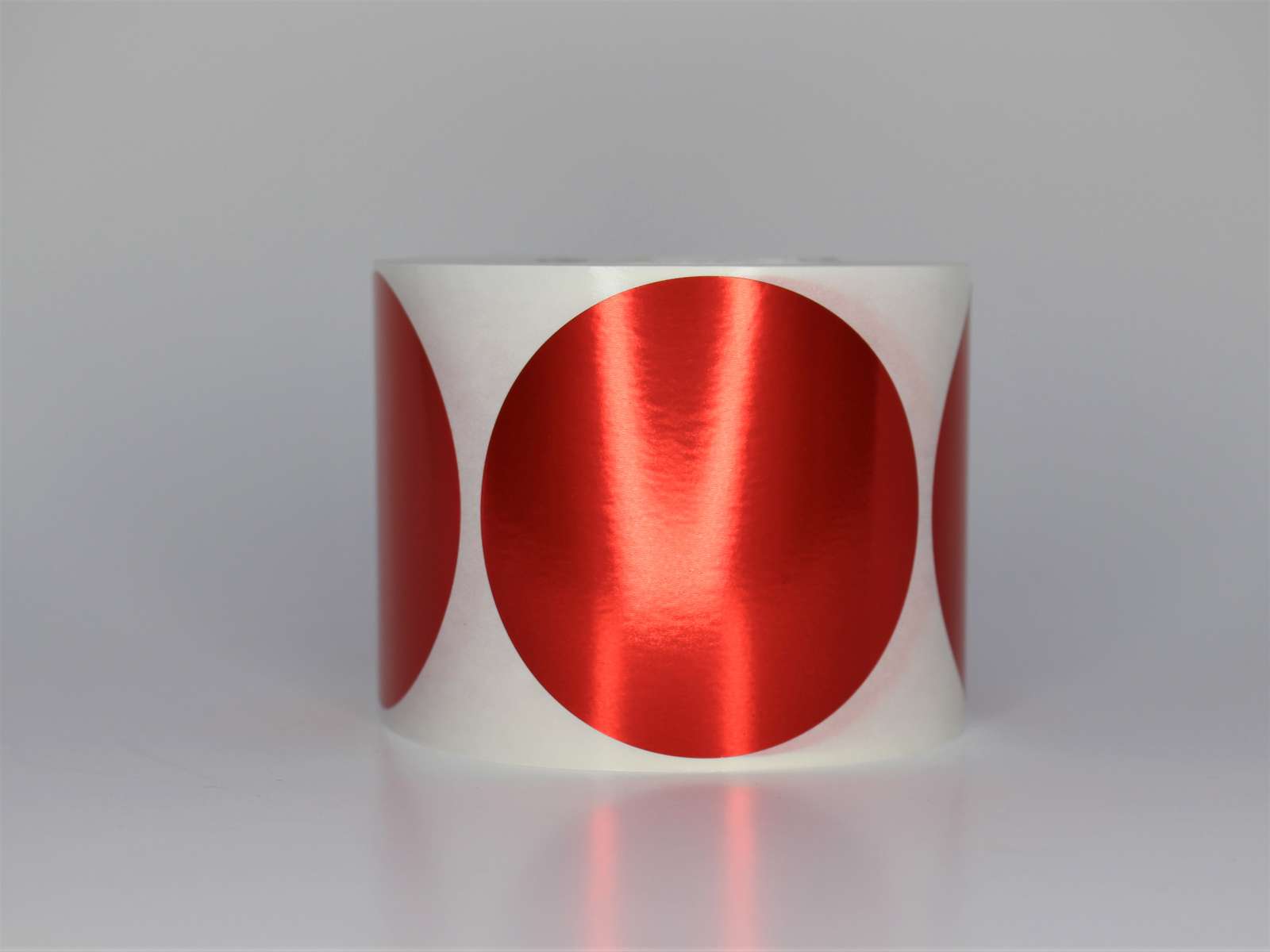 Røde blanke metallic etiketter Ø63mm i diameter. 500 stk. pr. rulle