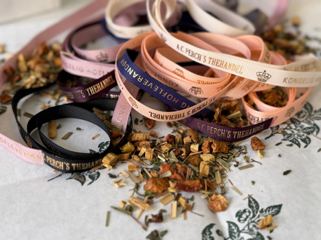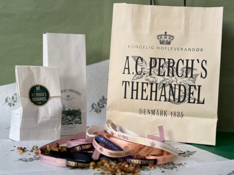 Mange års samarbejde med A.C. Perch's Thehandel har givet os en større samling af smukke gavebånd med logtryk, der passer til alle årstider i den gamle thehandel.