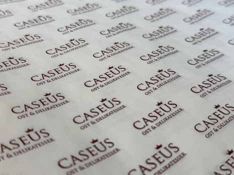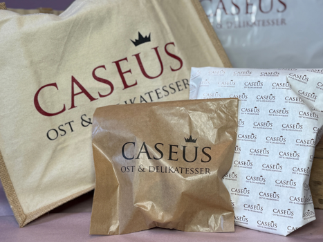 Vi har leveret mange forskellige varer til Caseus gennem tiden, men her kan du se ostepapir med logotryk, samt forskellige poser med og uden hank. Find Caseus her.