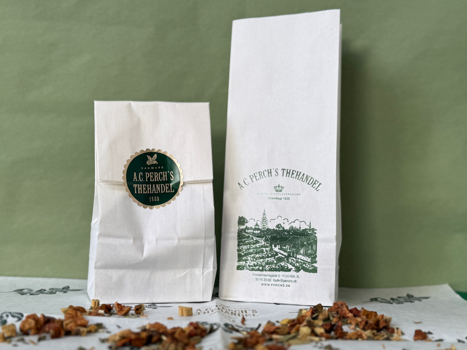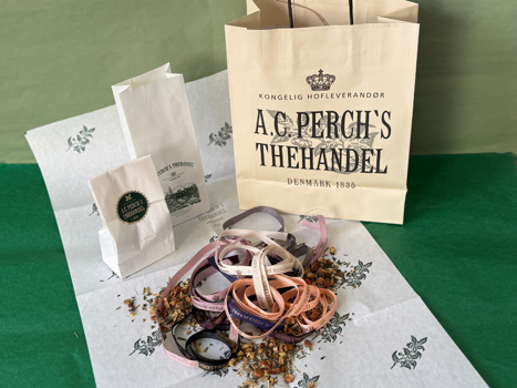 - Og som alle, der har bevæget sig ind i A.C. Perch's Thehandel, så kan man ikke nøjes med at vælge én the, og derfor skal der også en fin bærepose til.