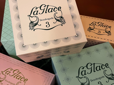 Vi har blandt andet leveret æsker, etiketter og silkebånd med logotryk til La Glace, og det er altså svært ikke lige at tage en kage med hjem, når vi leverer hos dem. Mød La Glace her.