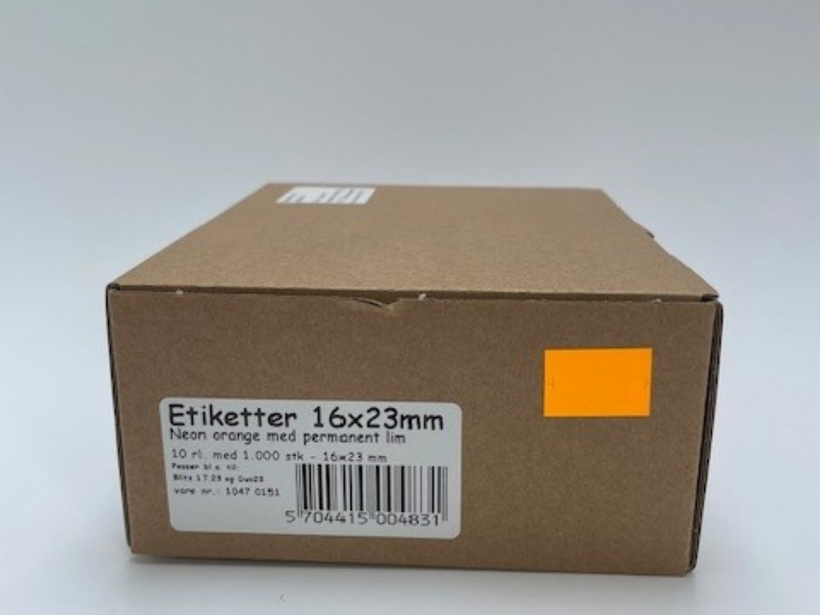 Etiketter 16x23 neon orange - 10 rl. m/1.000 stk.