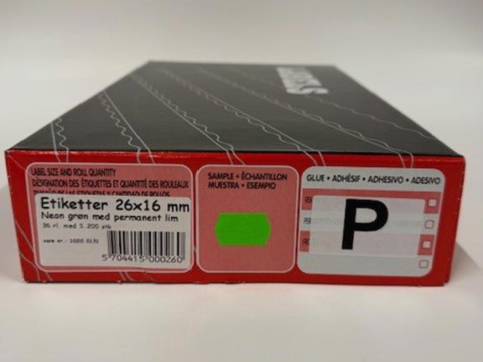 Neon grønne etiketter 26x16mm. 36 rl á 1200 etiketter pr. kasse.