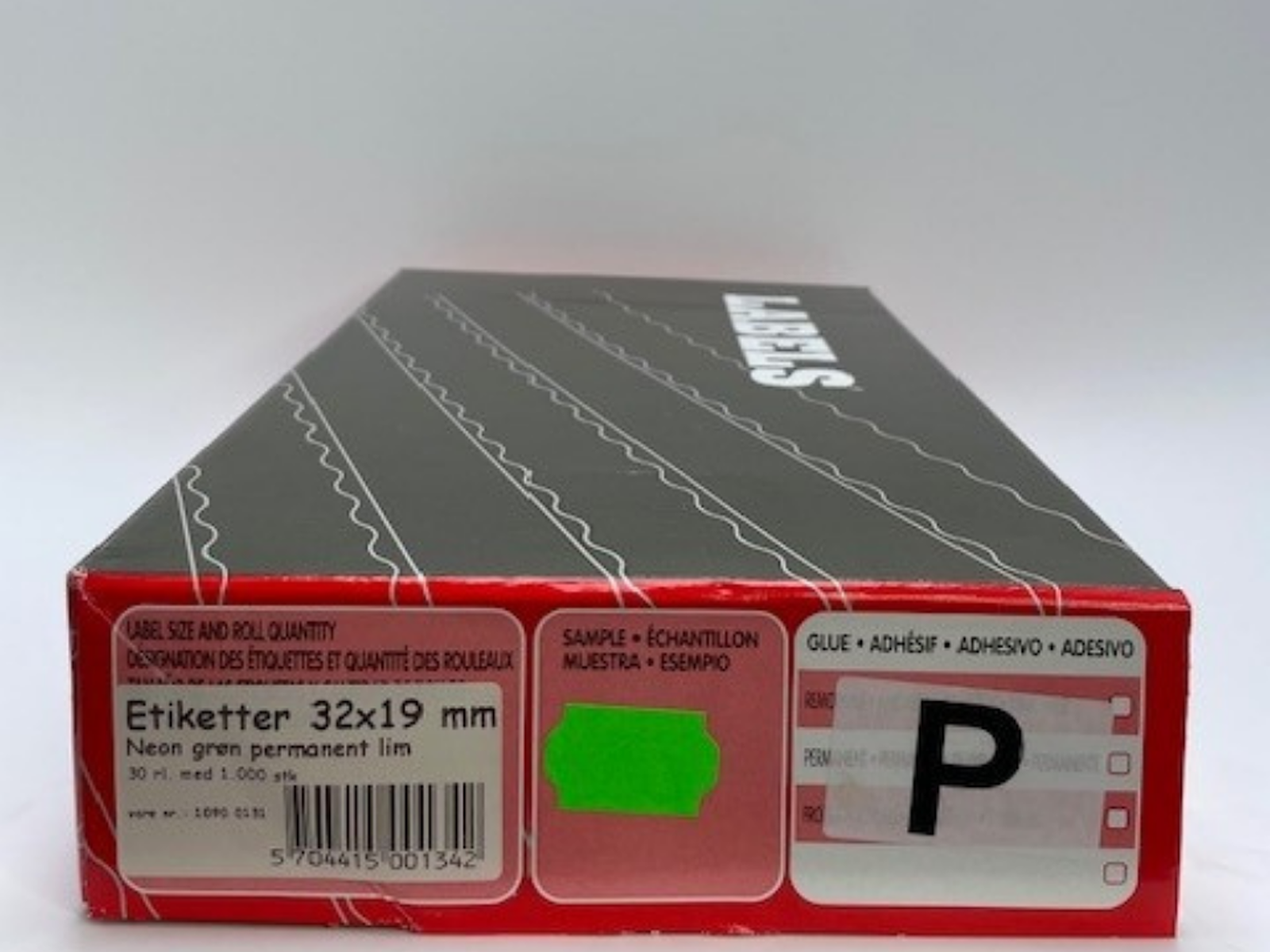 Etiketter 32x19 Wave neon grøn perm. 30 rl.