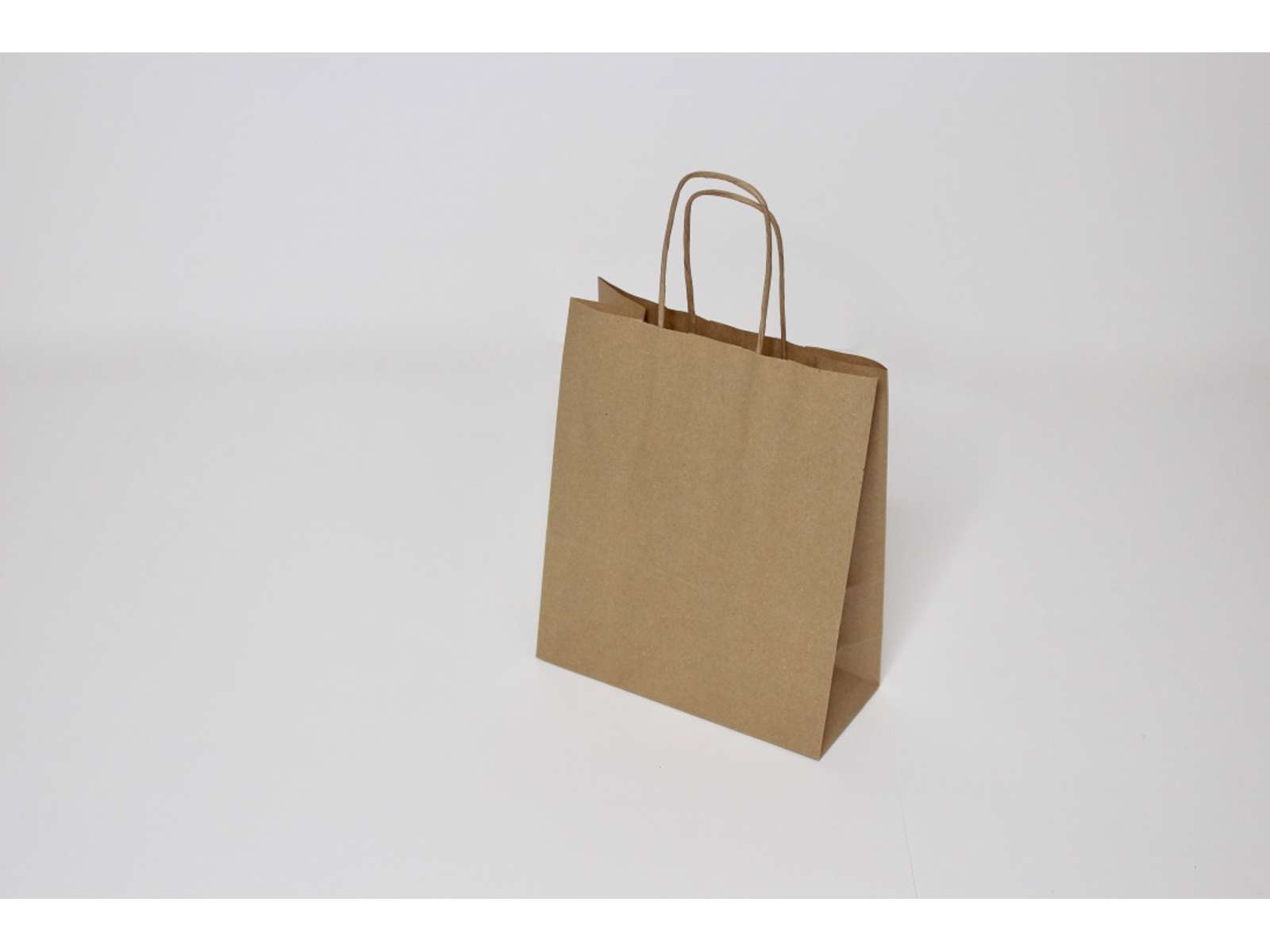 Denne lille brune papirspose er meget velegnet som gavepose fordi den har den pæne twistede hank.