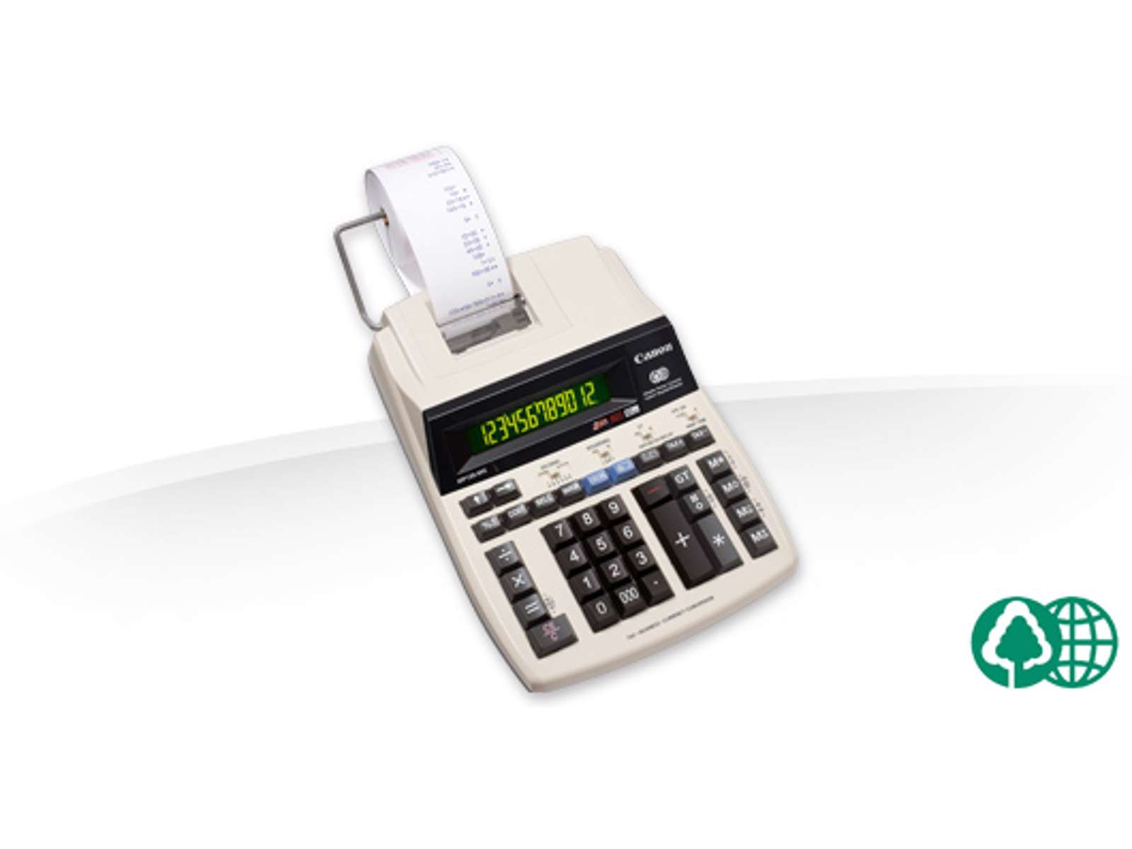 Strimmelregner med 12 cifre, 2-farvet display og 2-farvet print