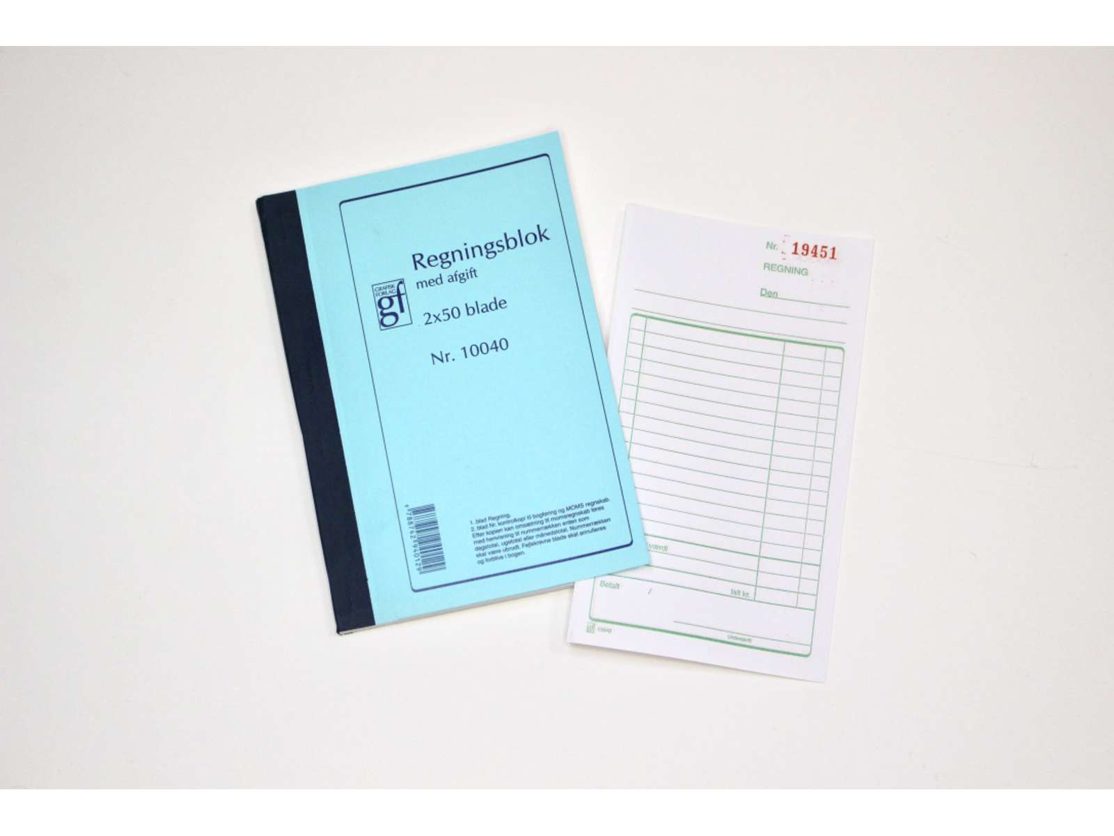 Regningsblok med kopi og momsafregning