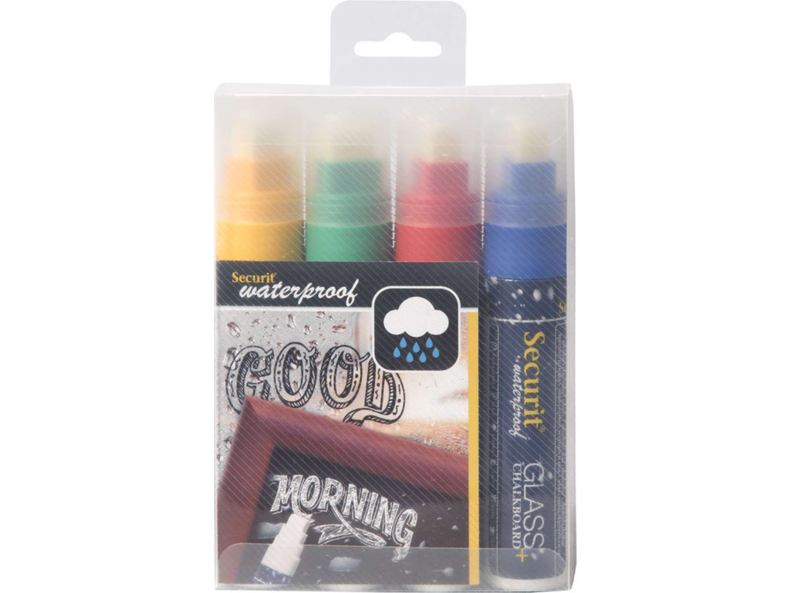 4 stk. vandfaste markere 7-15mm guld, grøn, rød og blå
