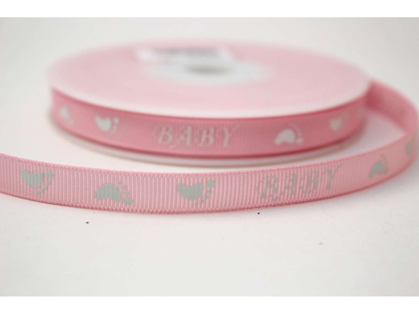 Rillet rosa satinbånd med hvidt tryk "Baby"