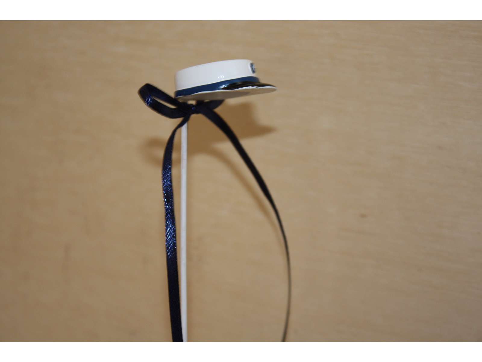 Blå studenterhue på pind til dekoration. Disse studenterhuer på pind er festlige i en buket eller sammen med en enkelt rød rose.