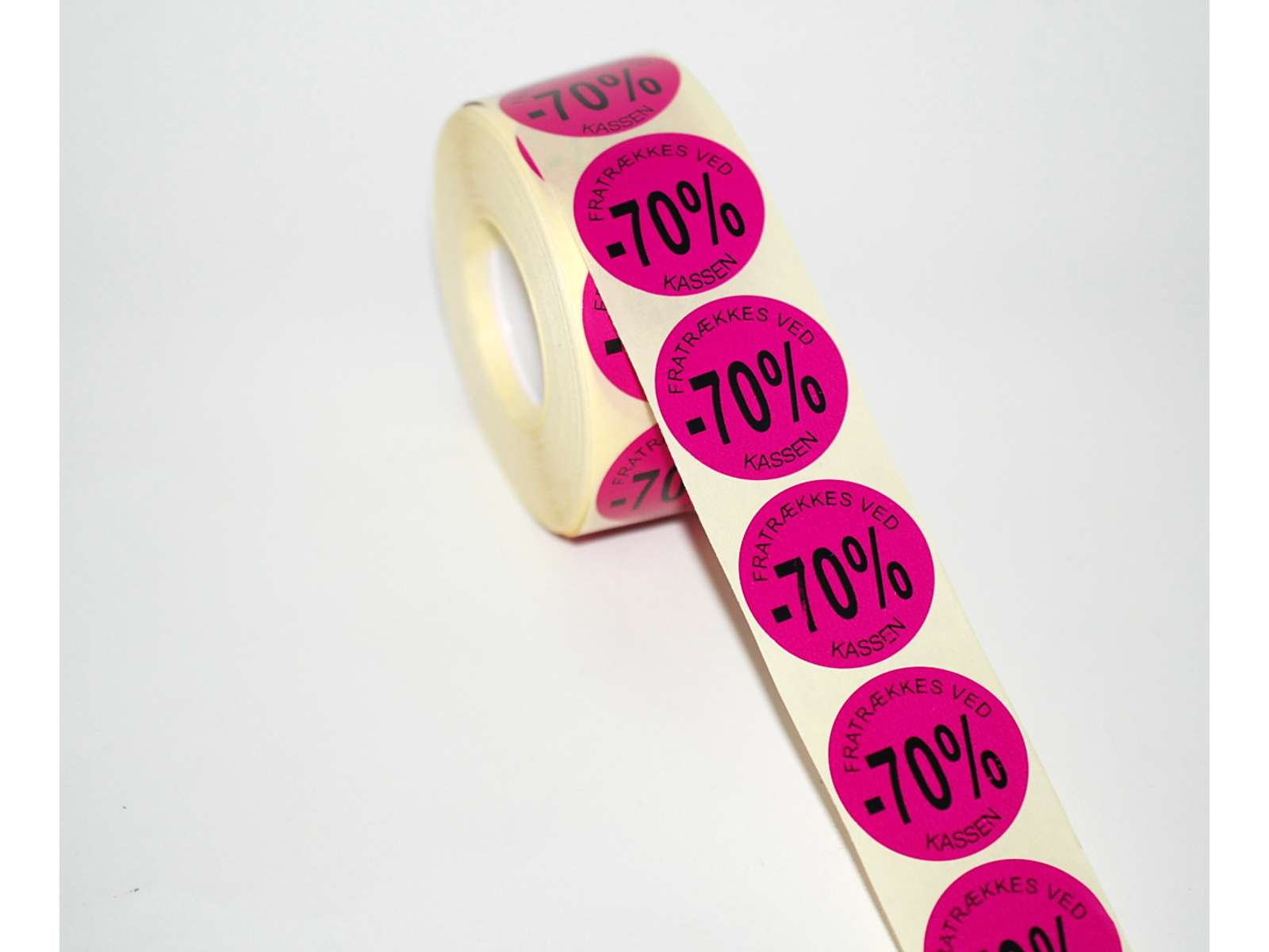 Fratrækkes ved kassen. Letaftagelig etiketter. 1000 stk pr. rulle