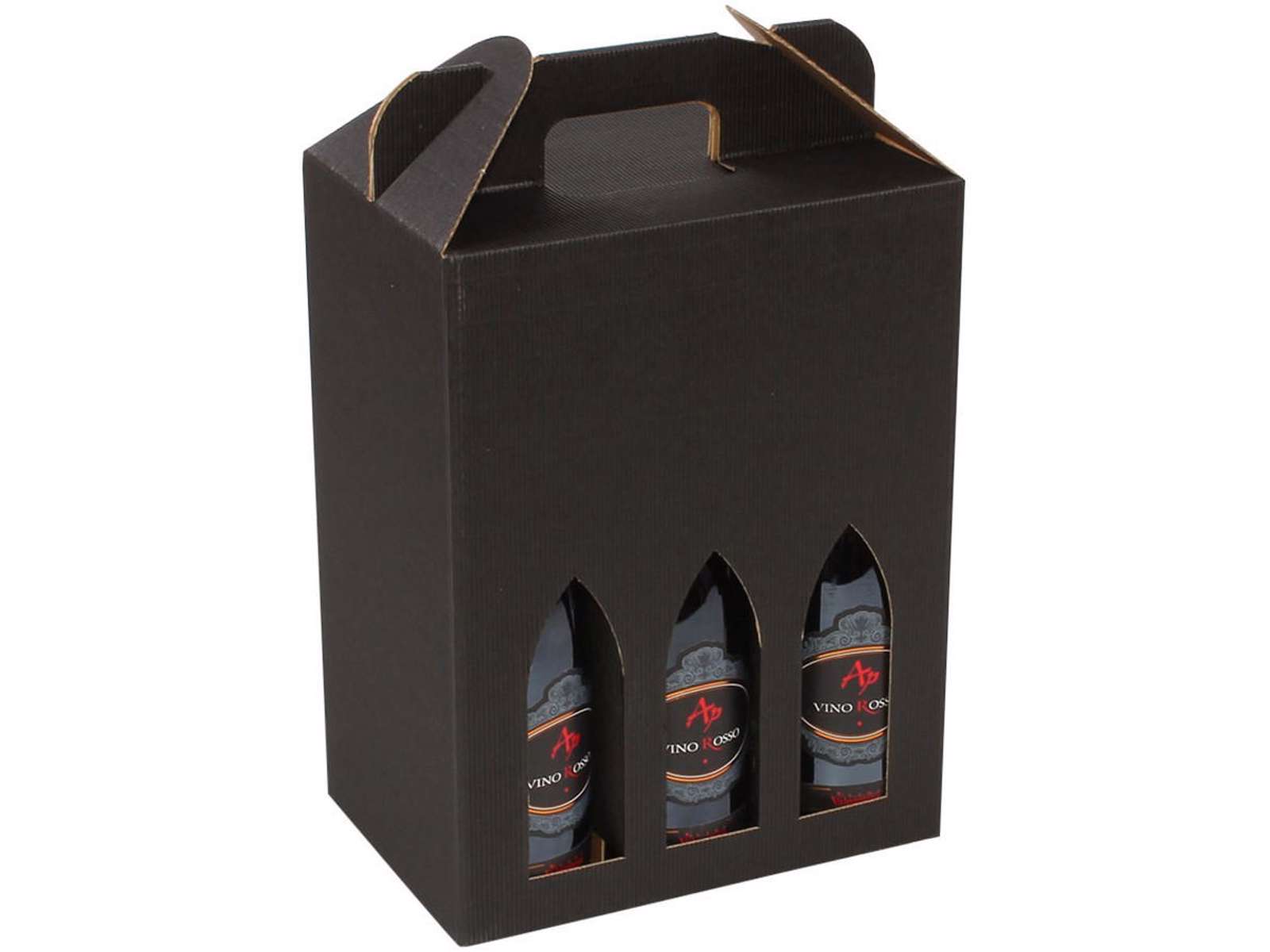 Vinkarton sort bølge til 6 flasker 267x172x330 mm