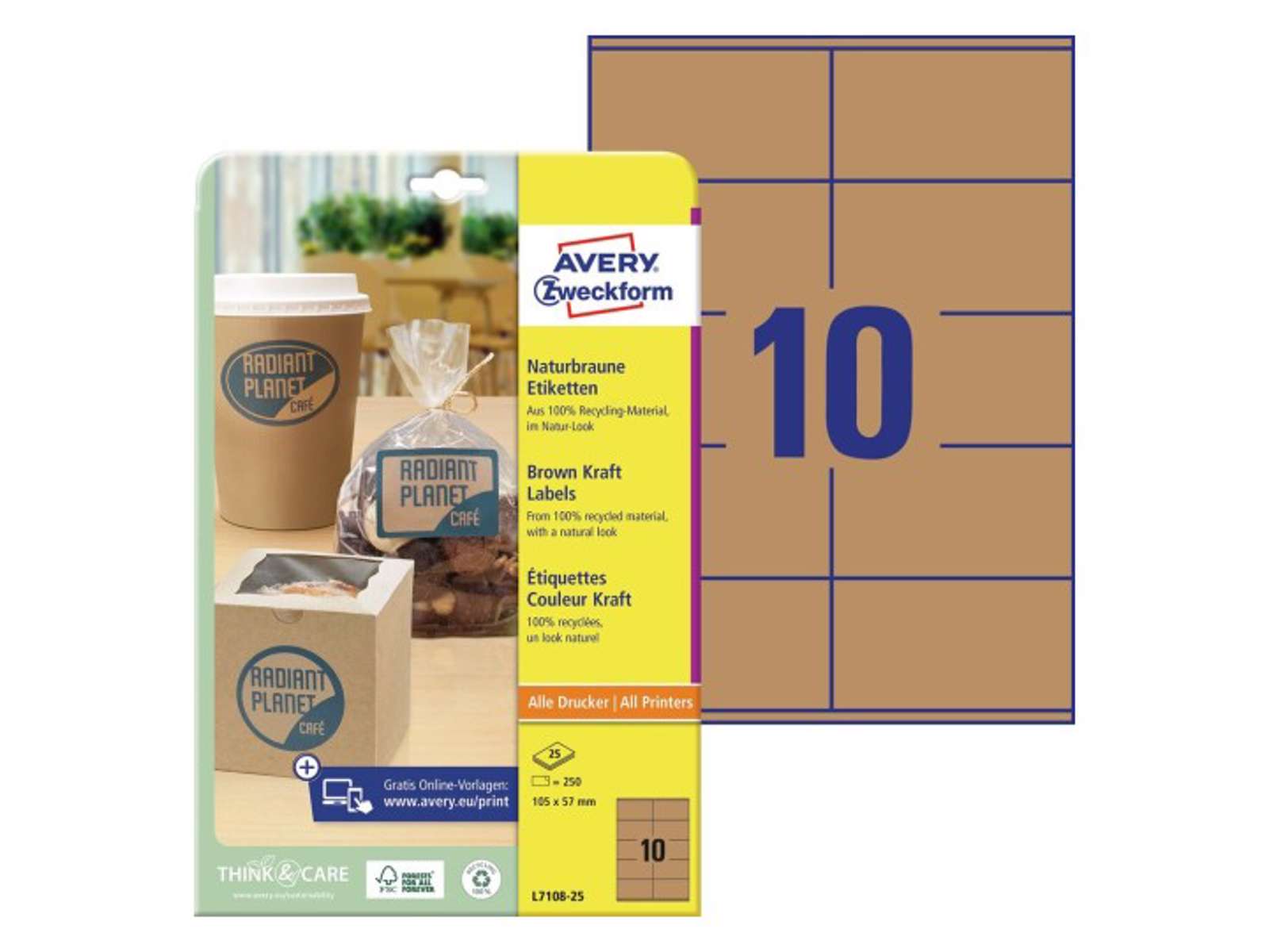 Give your products a modern natural look with Avery's L7108-25 natural brown labels with 10 labels/sheet and 250 labels/pack, they are made from 100% recycled material.