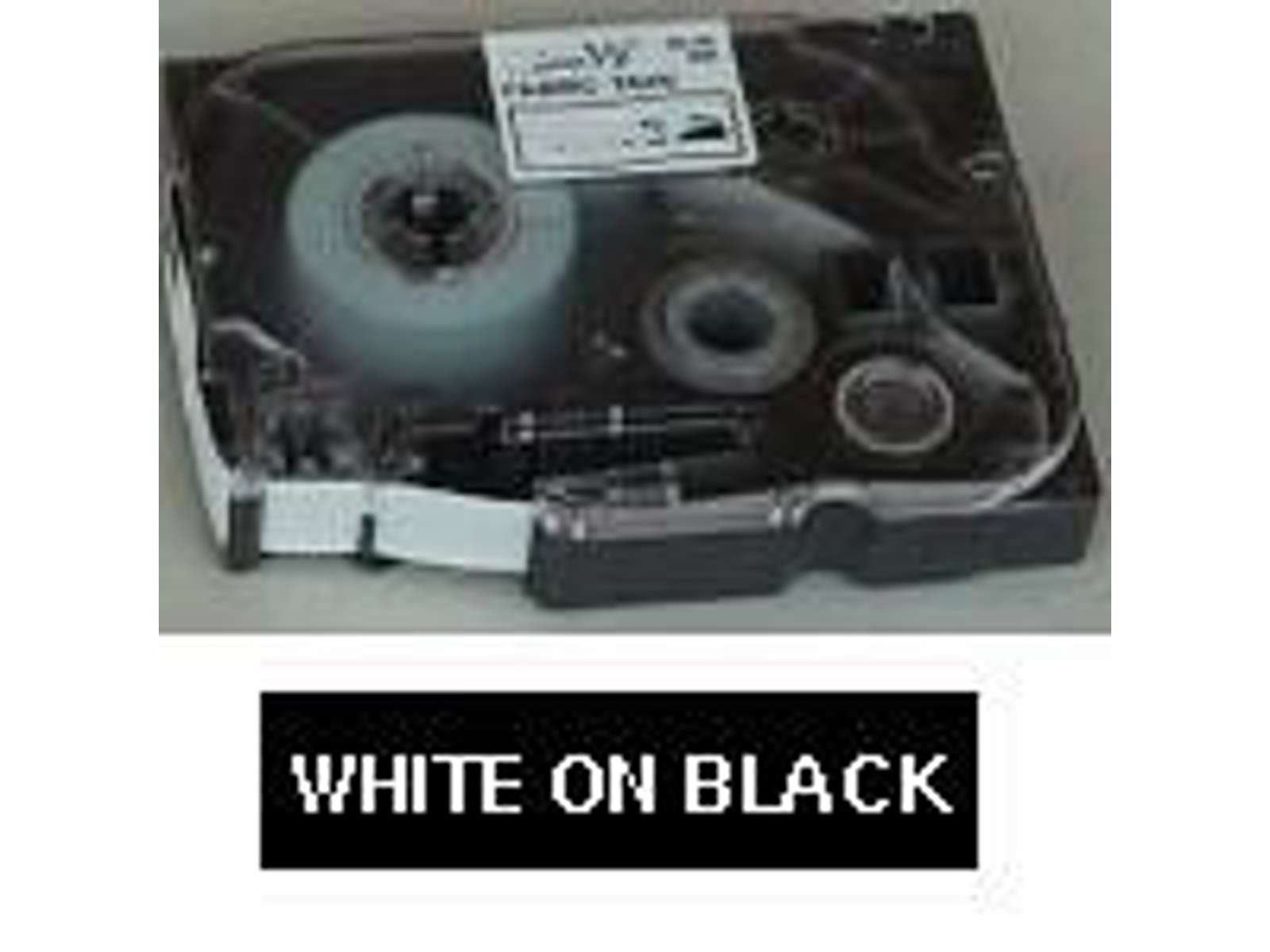 Colour: White text onå black tape