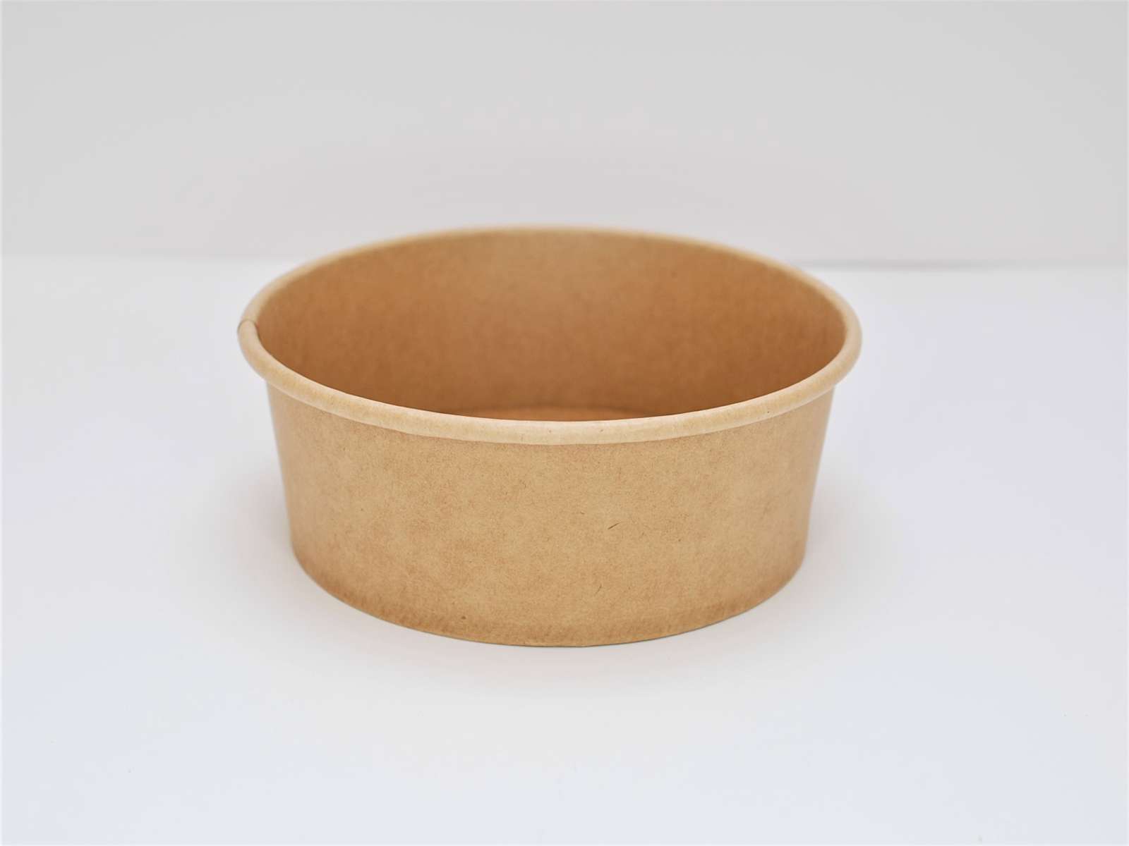 The salad bowl is made of brown cardboard both outside and inside. A beautiful and sustainable serving for delicious salads and takeaway dishes.