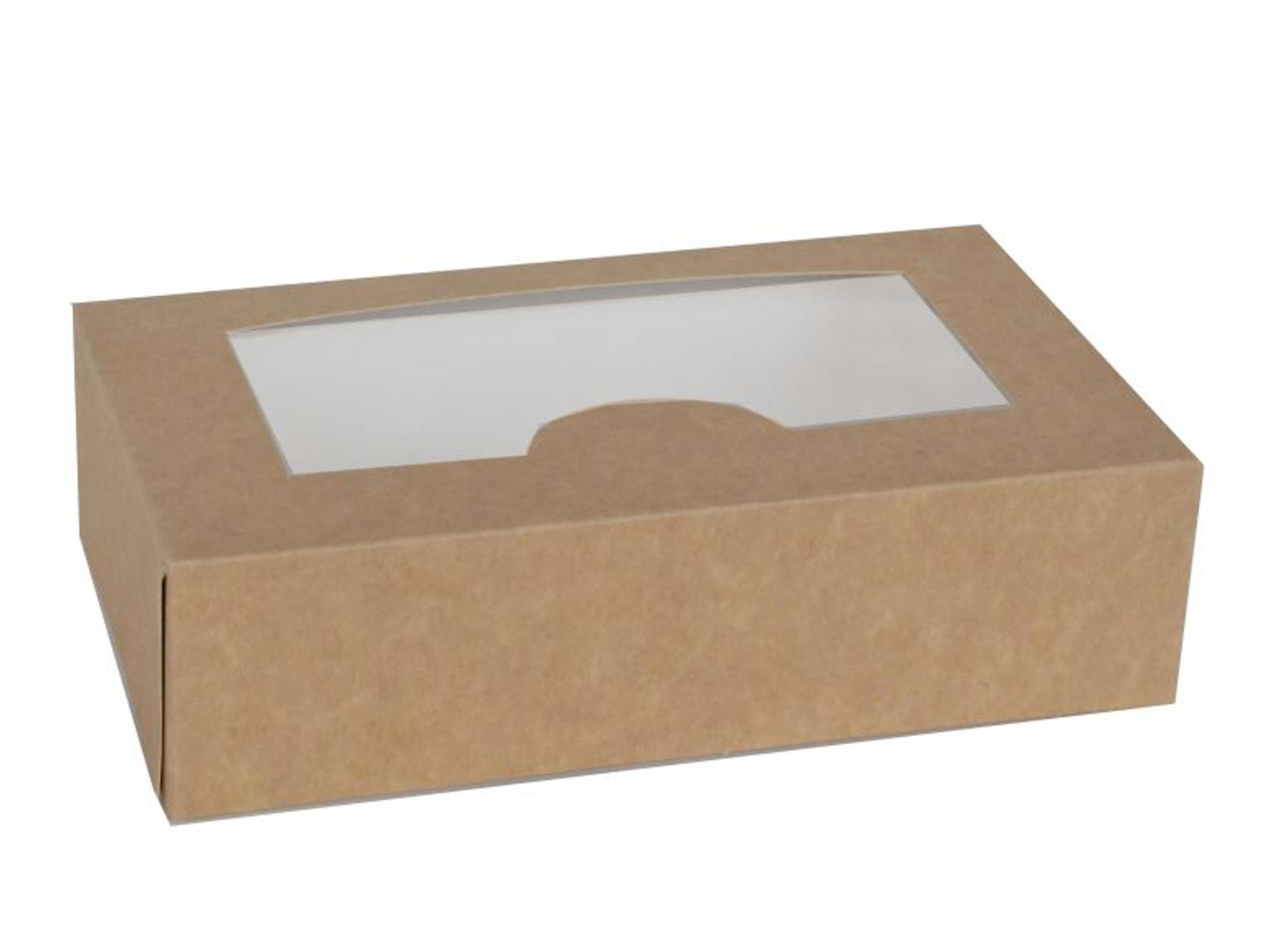 Food-approved box with window. Measures 18 x 11 cm and is 5 cm high