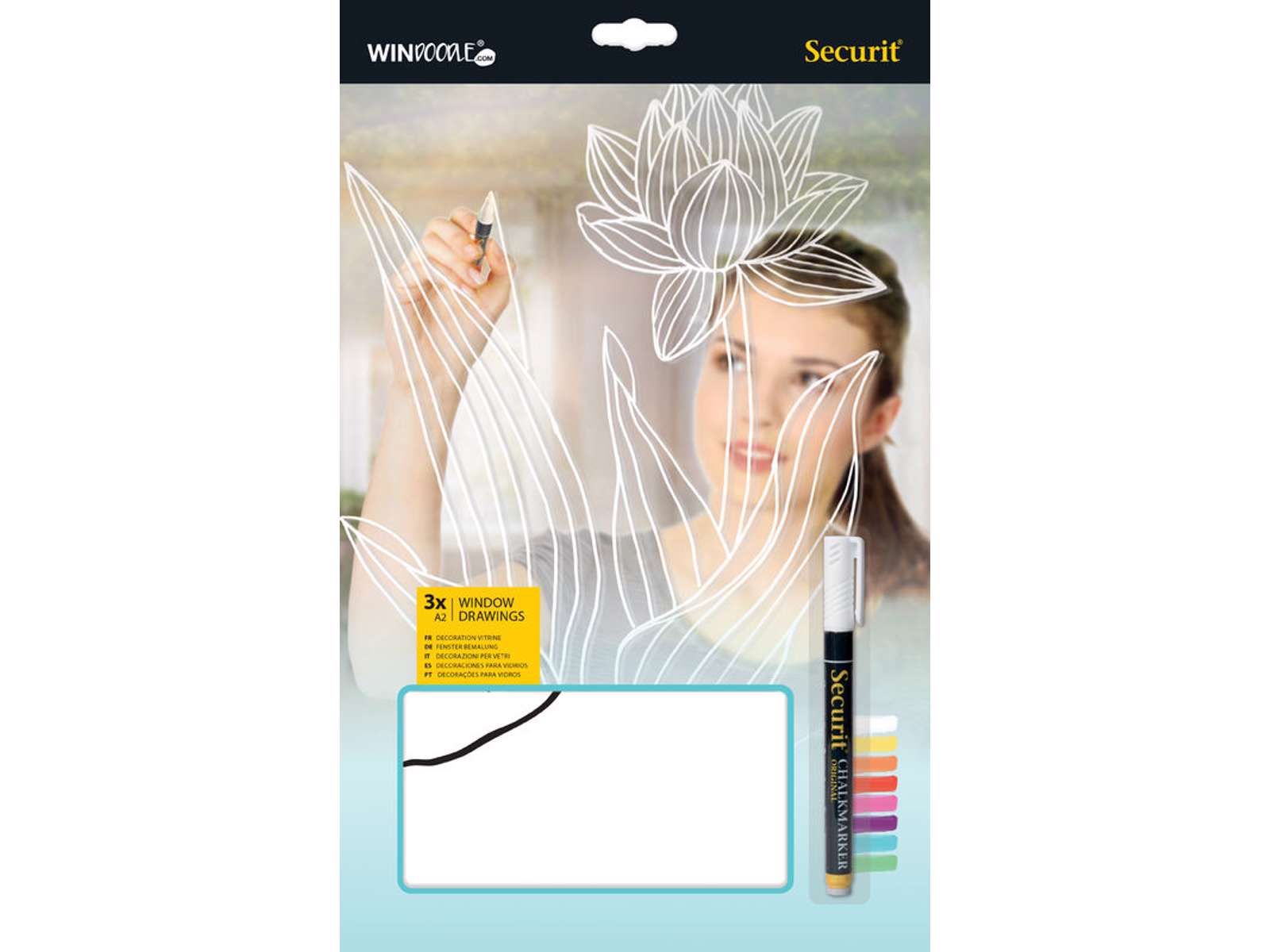 • This Windoodle set includes a white chalk marker and three Halloween templates that you can put on. the window and draws after