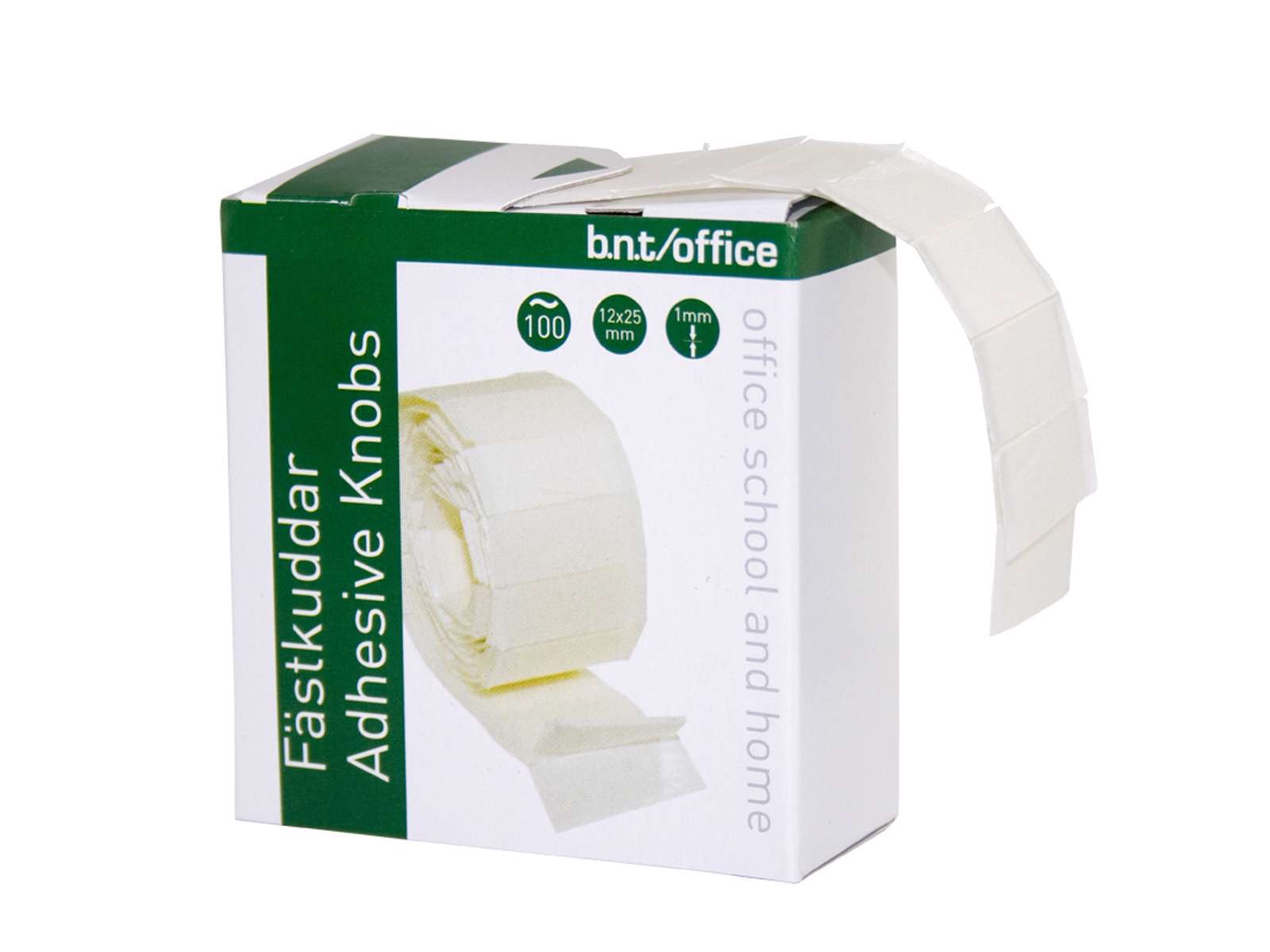 In practical and useful dispenser. Approx. 100 pads 12x25mm and 1 mm thick, made of polyethylene foam.