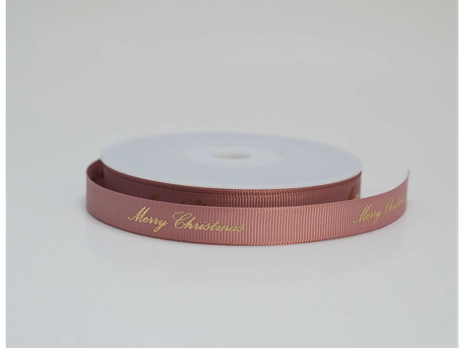 Riveted Christmas ribbon old pink with glossy gold print "Merry Christmas"