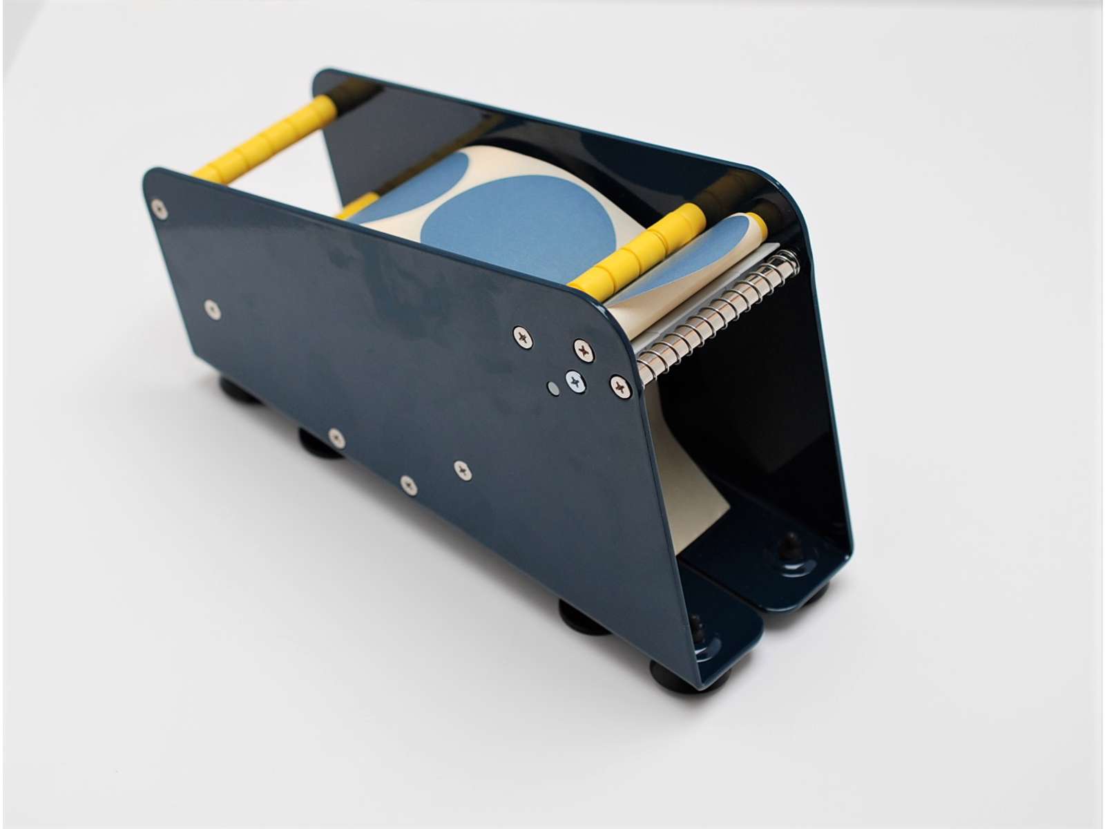 Length 23 cm x depth 8 cm x height 13.5 cm. A heavy and stable label dispenser, which is fixed using suction cups on; the underside.