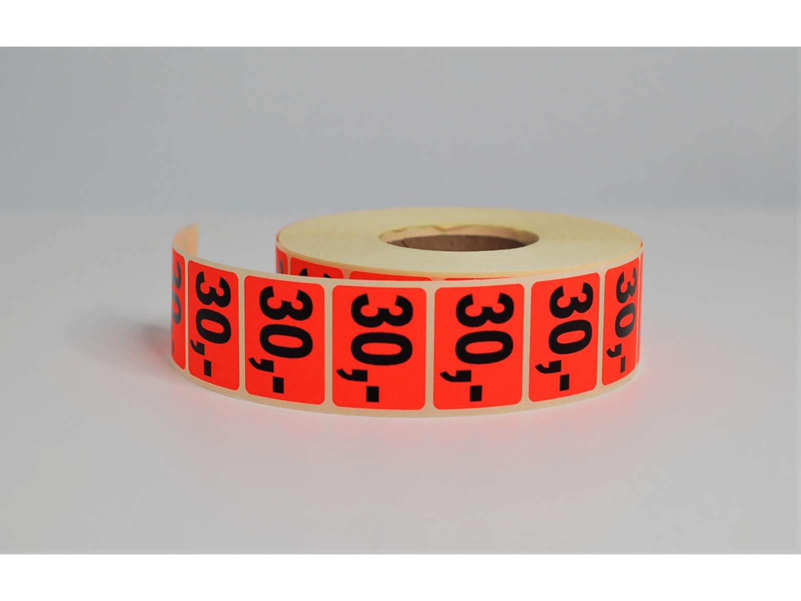 Pre-printed labels neon red NOK 30. 2000 pieces per roll