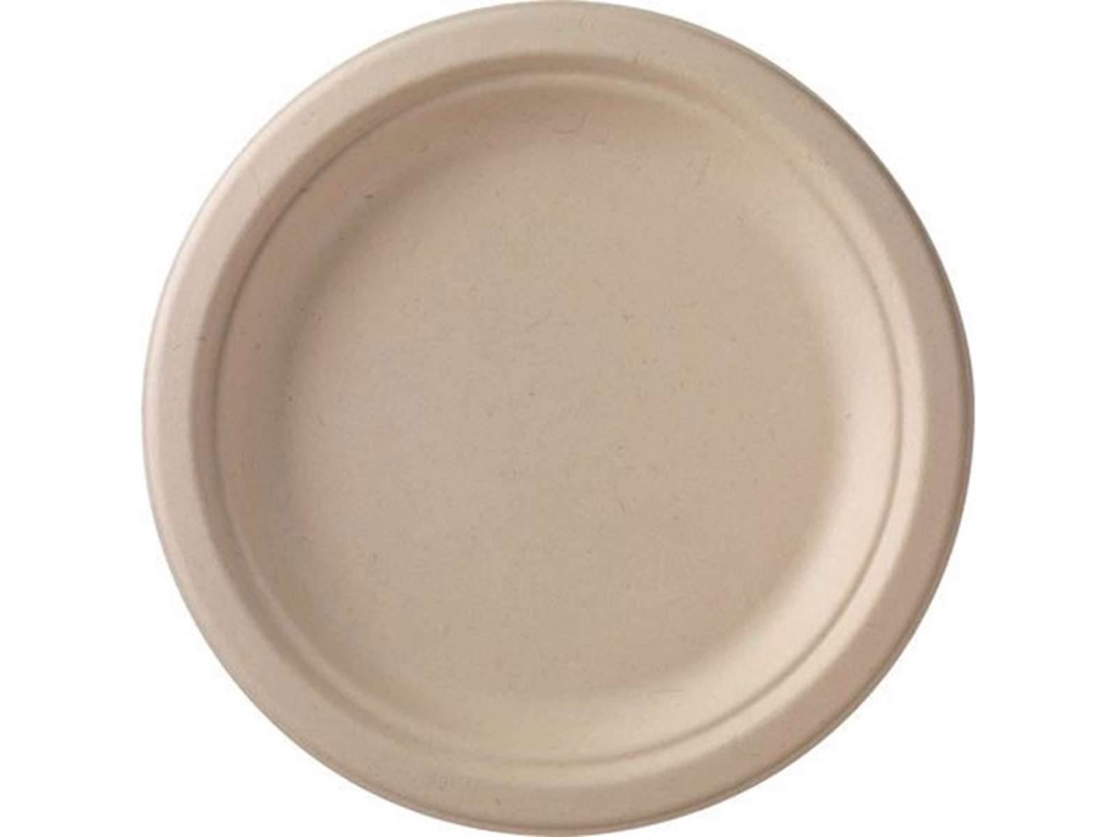 The plate is made from sugarcane fiber, which is a waste product from the extraction of sugar from sugar cane. The plate is thus 100% biodegradable and compostable after use.