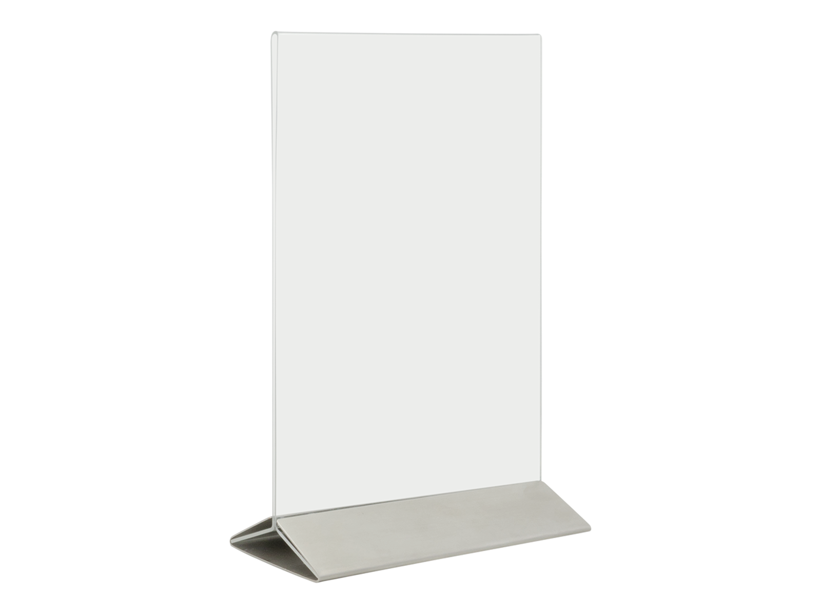Acrylic display frame A5 with brushed stainless steel base< /p>