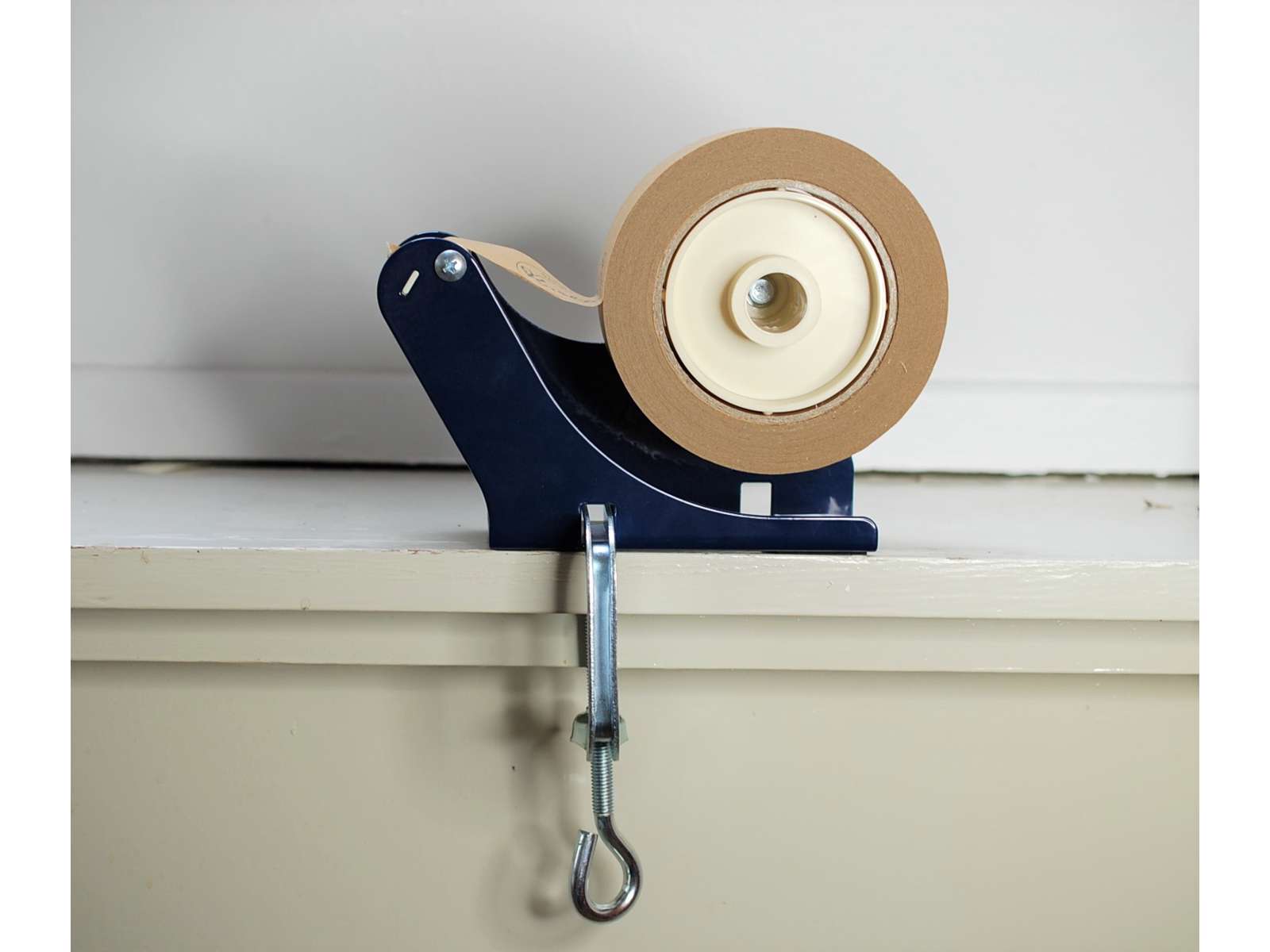 This tape holder has non-slip pads and a screw clamp, soå it can be fixed on; the table.